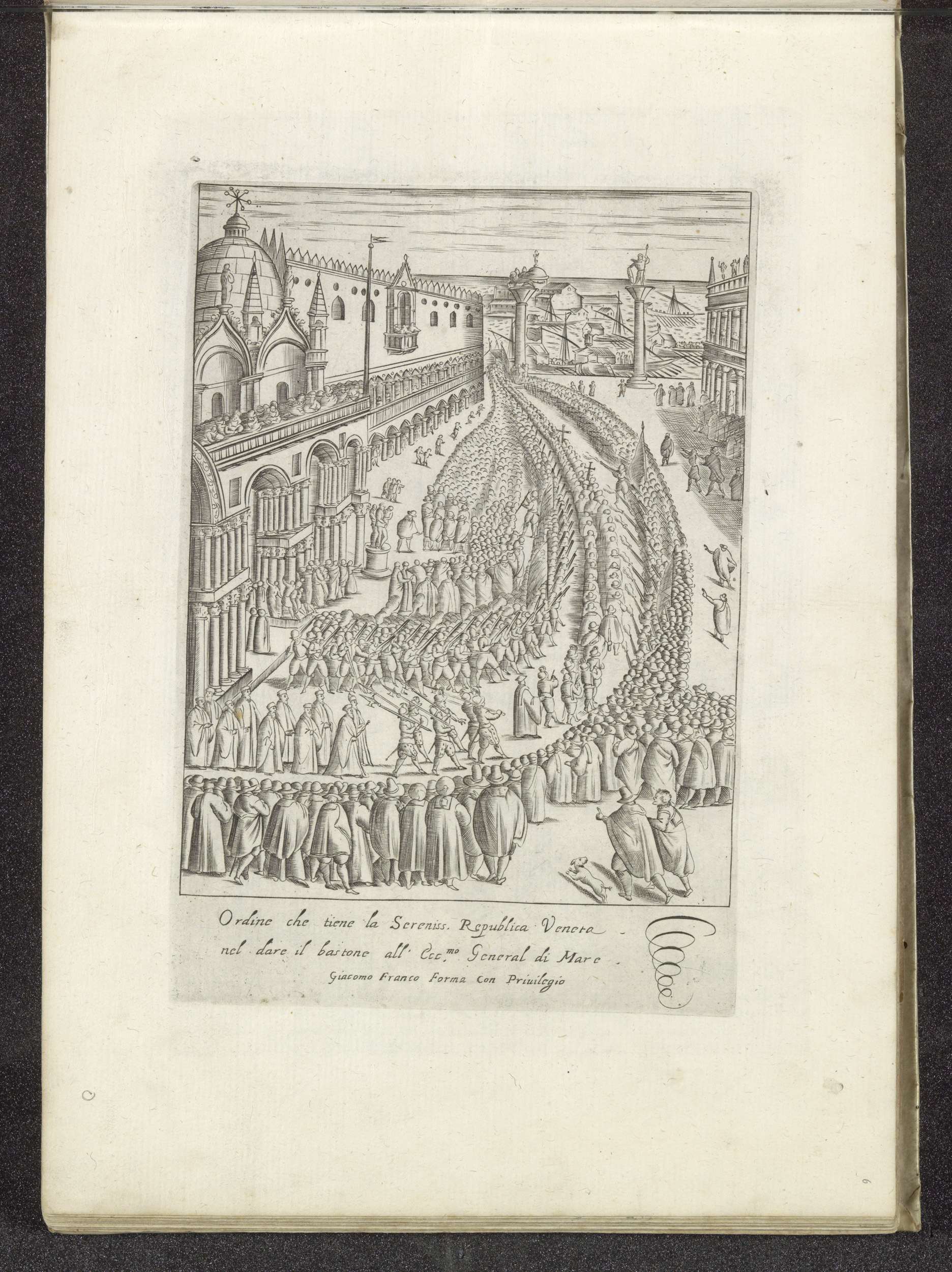 Doge wordt gedragen over het San Marcoplein te Venetië