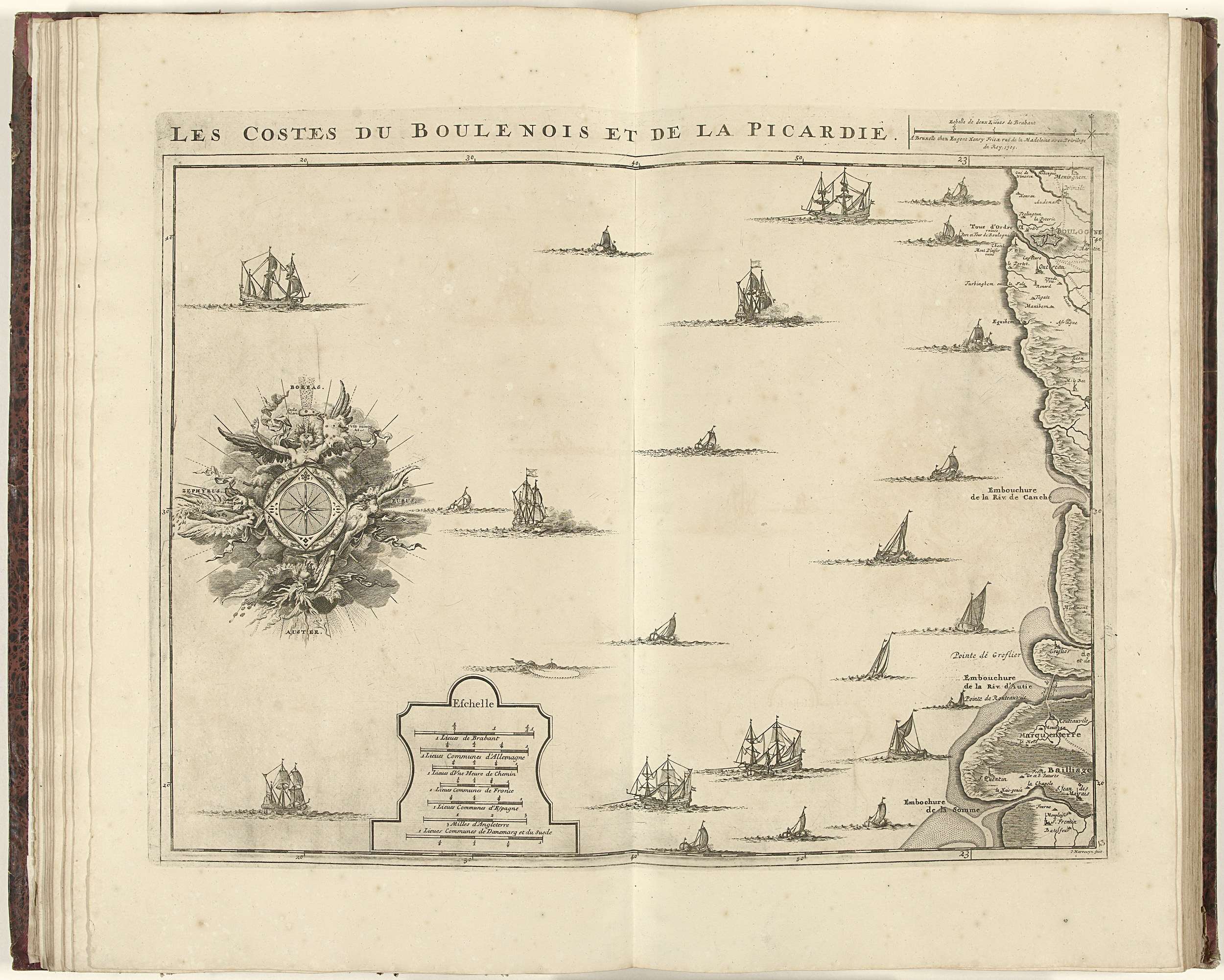 Kaart van de Franse kust bij Boulogne en Picardië, 1709