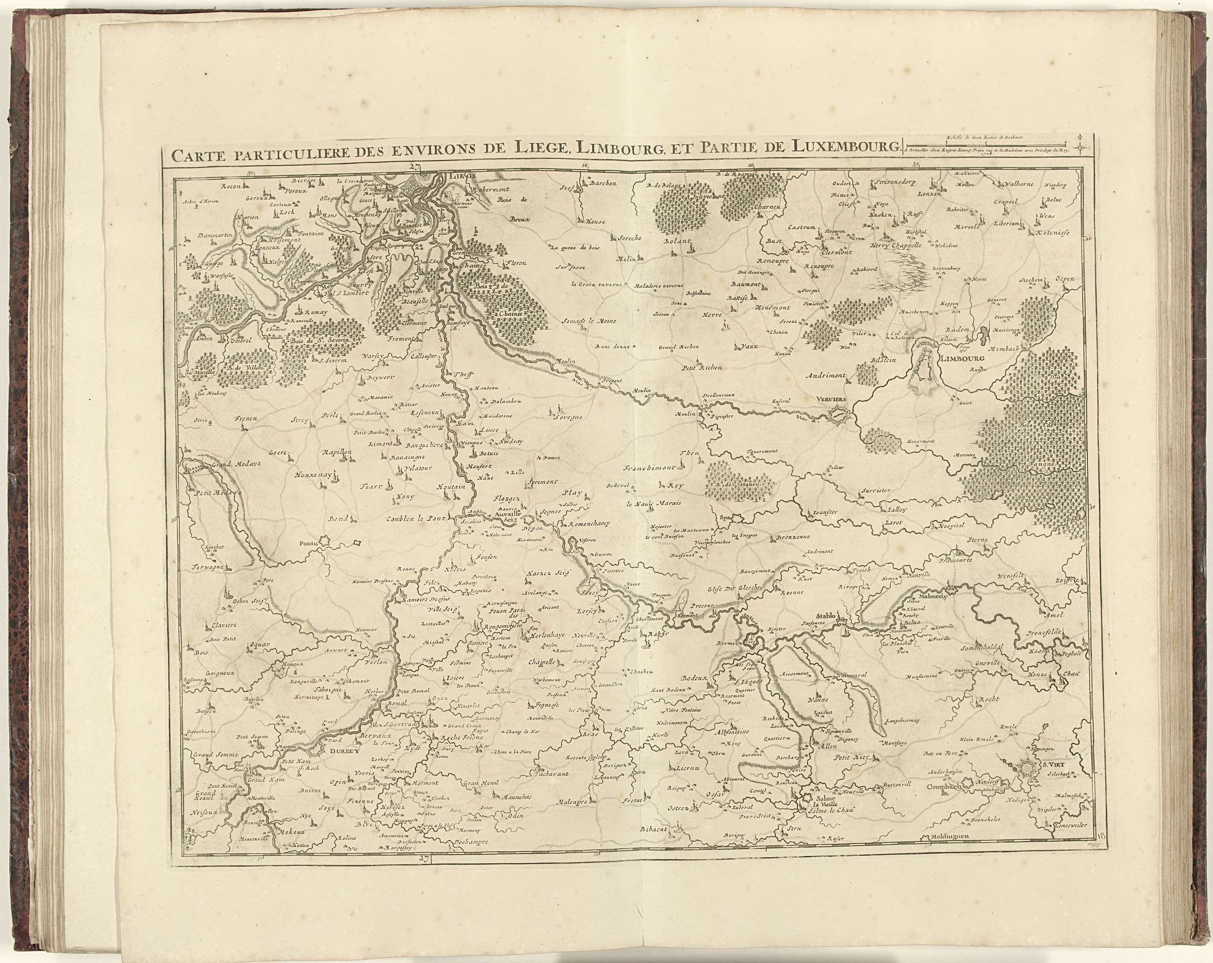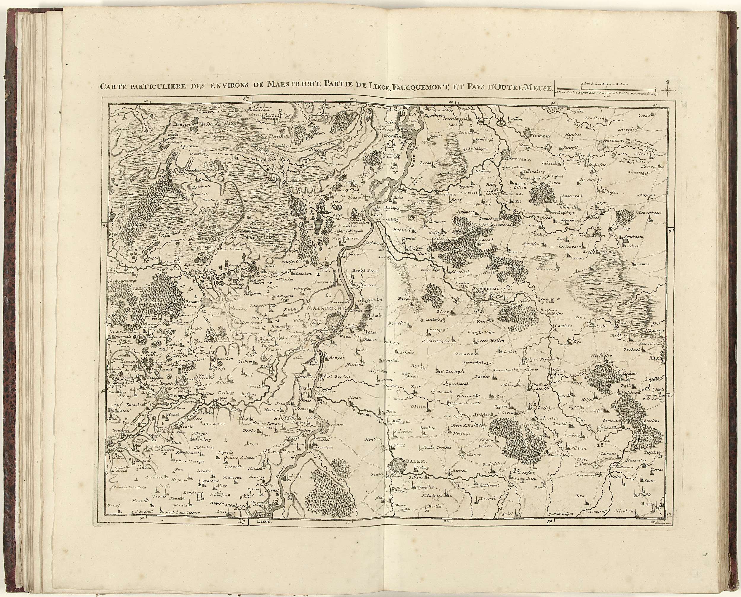 Kaart van Limburg met de omgeving rond Maastricht, 1708