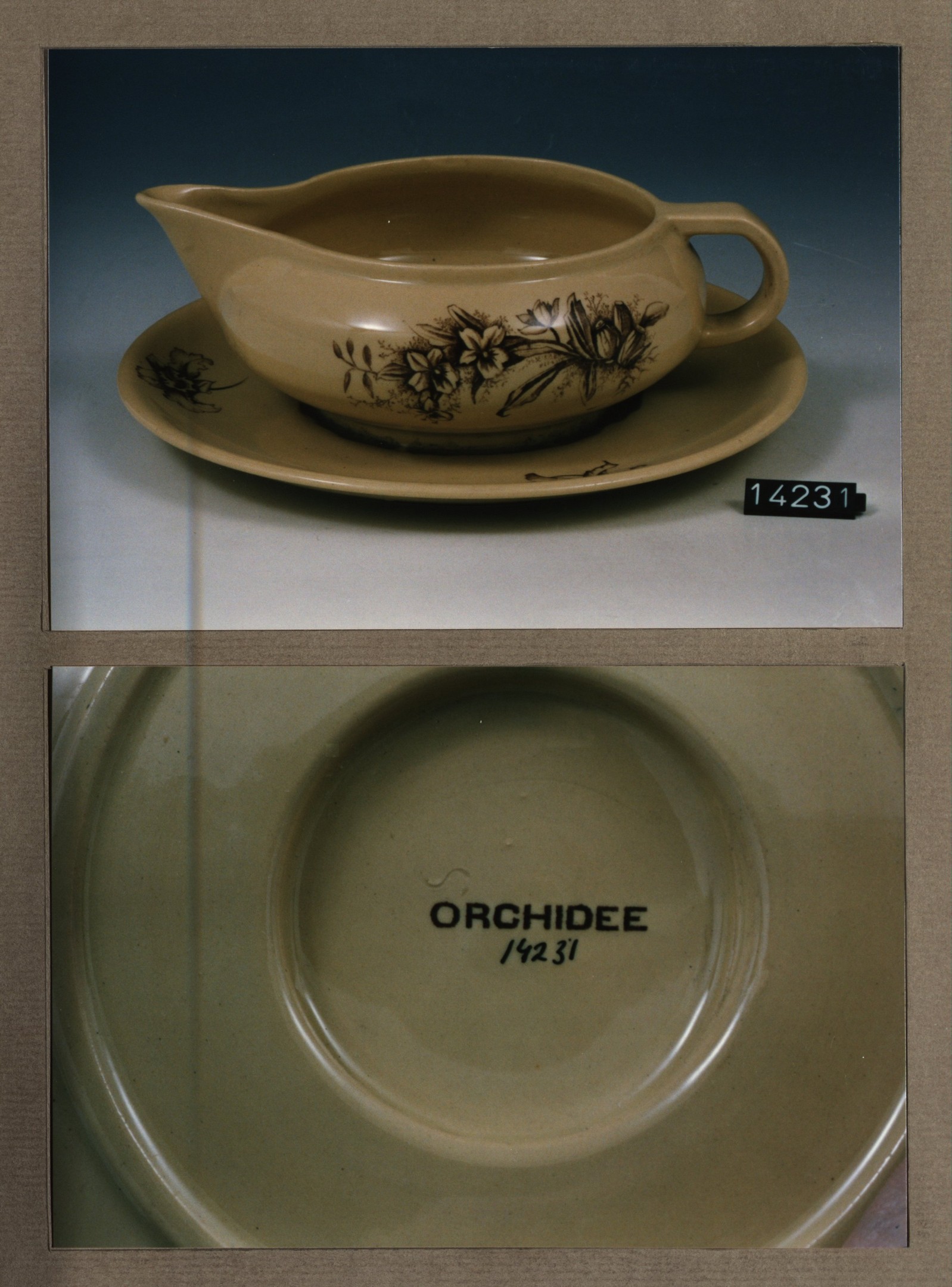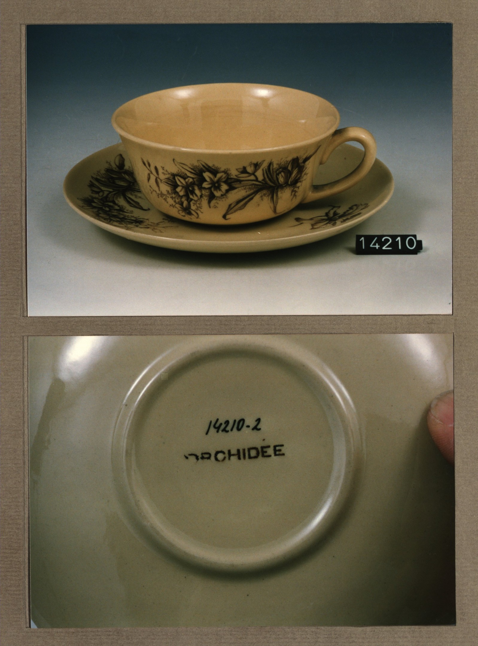 Kop en schotel, model Maas met decor Orchidee