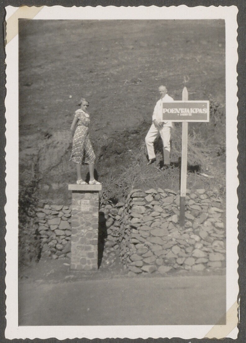 Elly van den Akker poseert bij Puncakpas