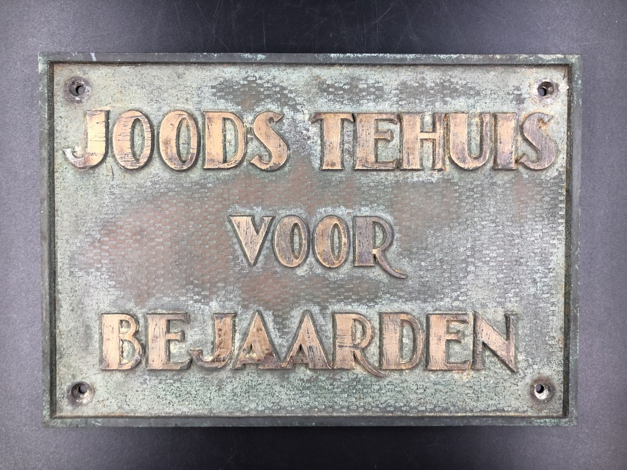 Bronzen rechthoekige plaquette, met in relief opschr...