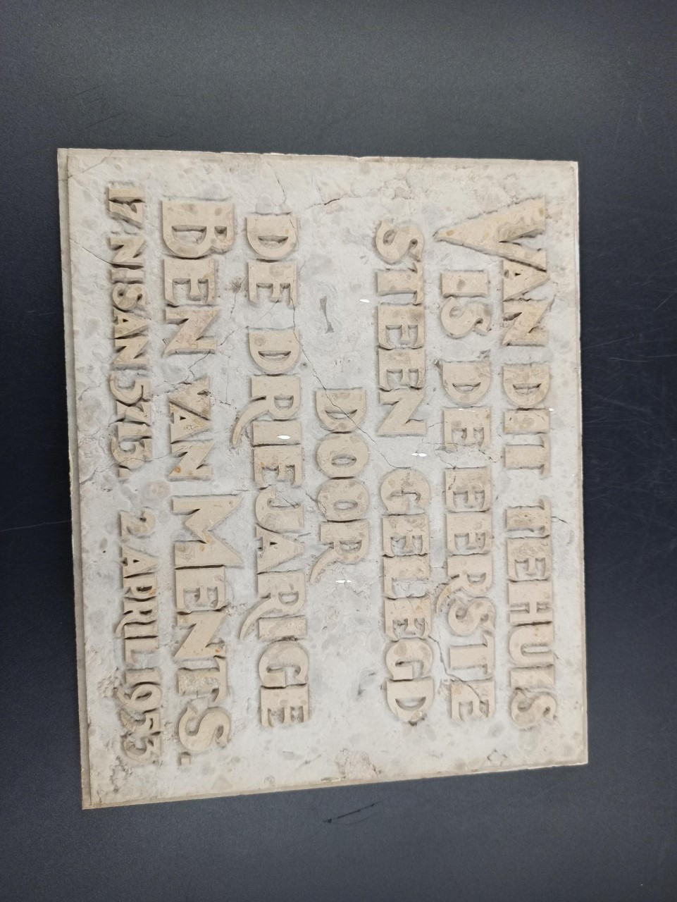 Rechthoekige marmeren gedenksteen, met tekst in reli...