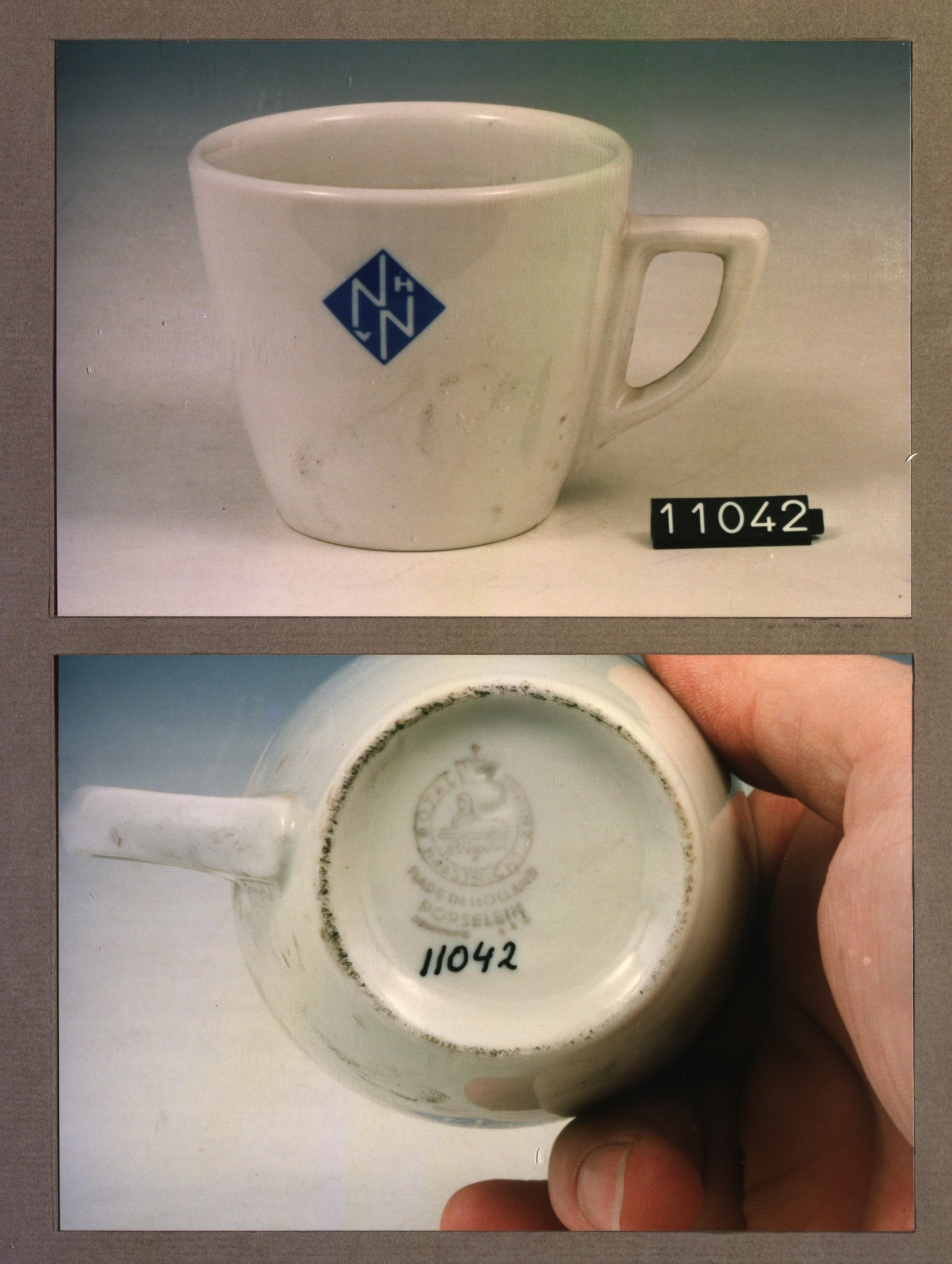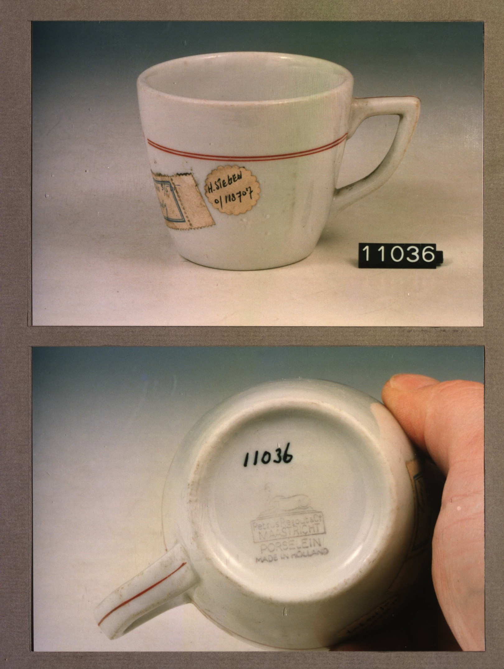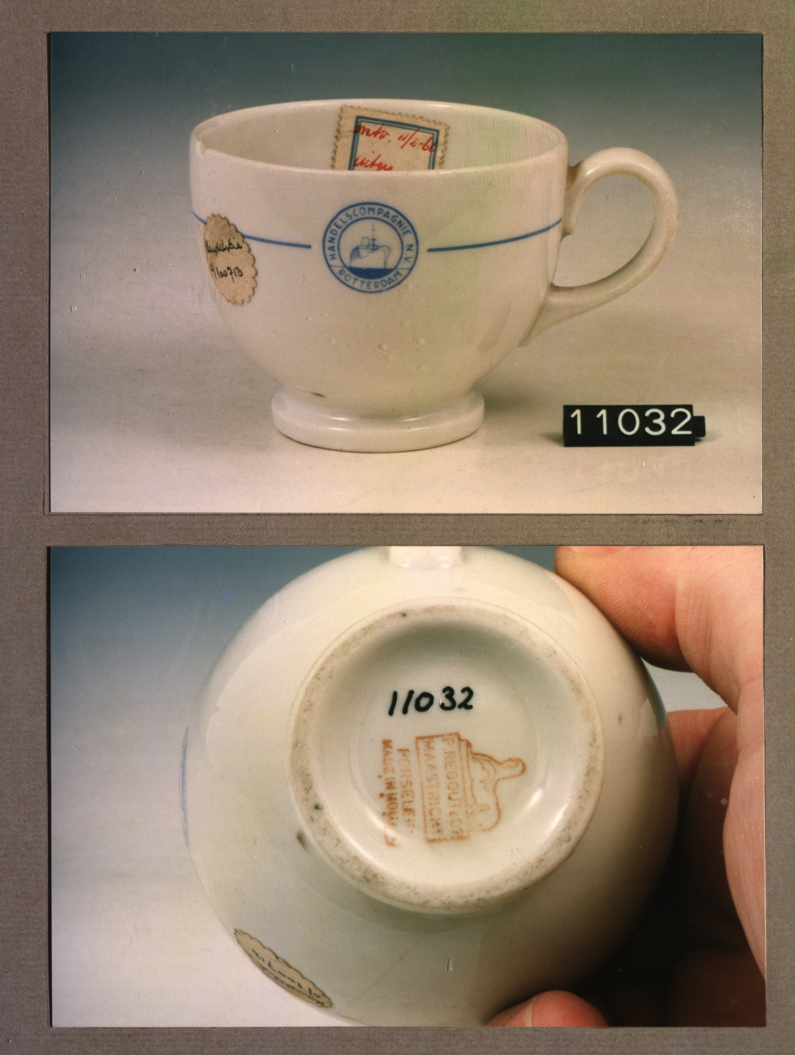 Kop met opschrift, model P 2 met decor N.v.h.N.