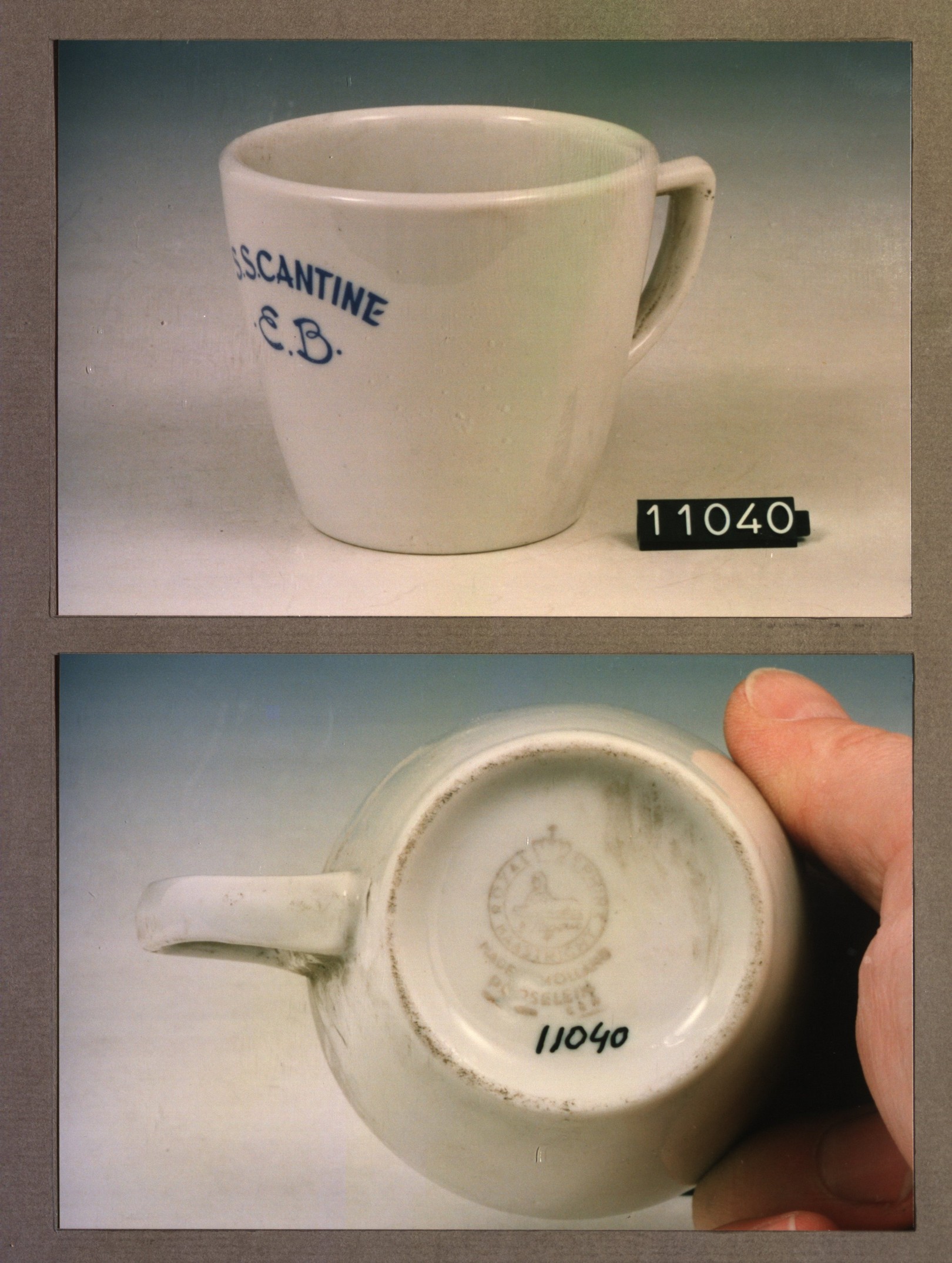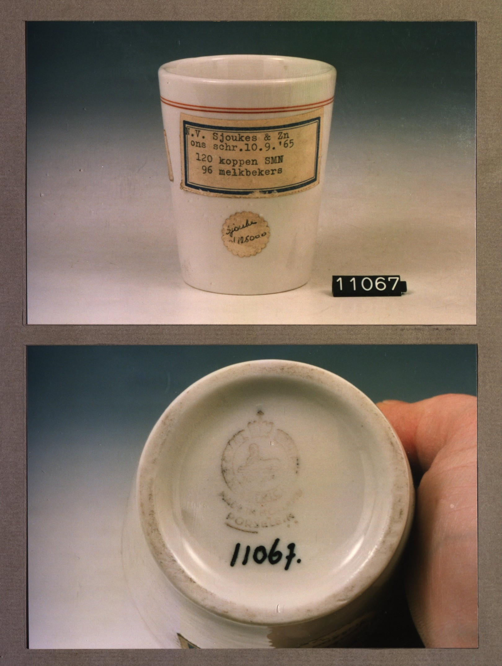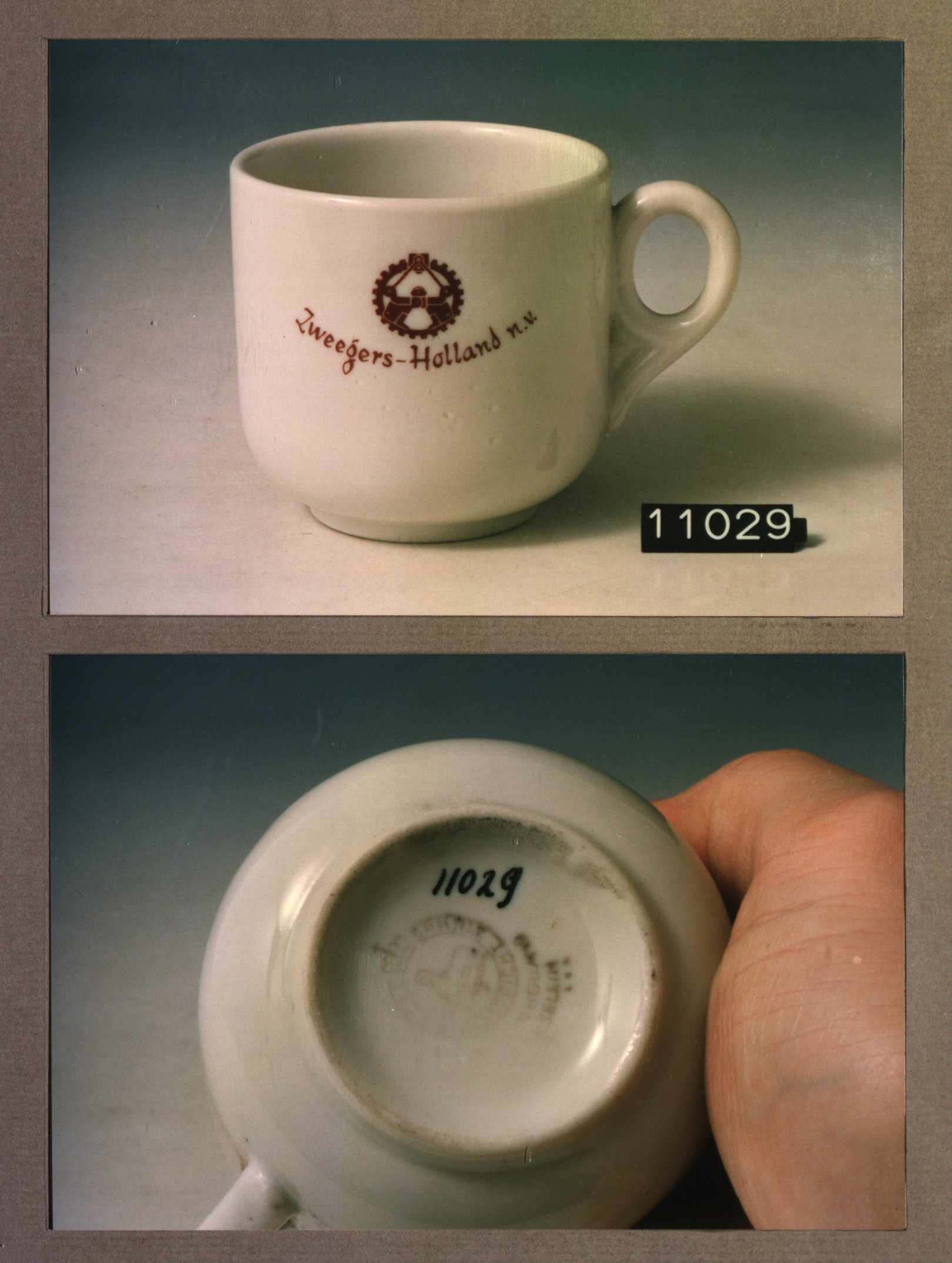 Kop met opschrift, model P 2 met decor N.v.h.N.