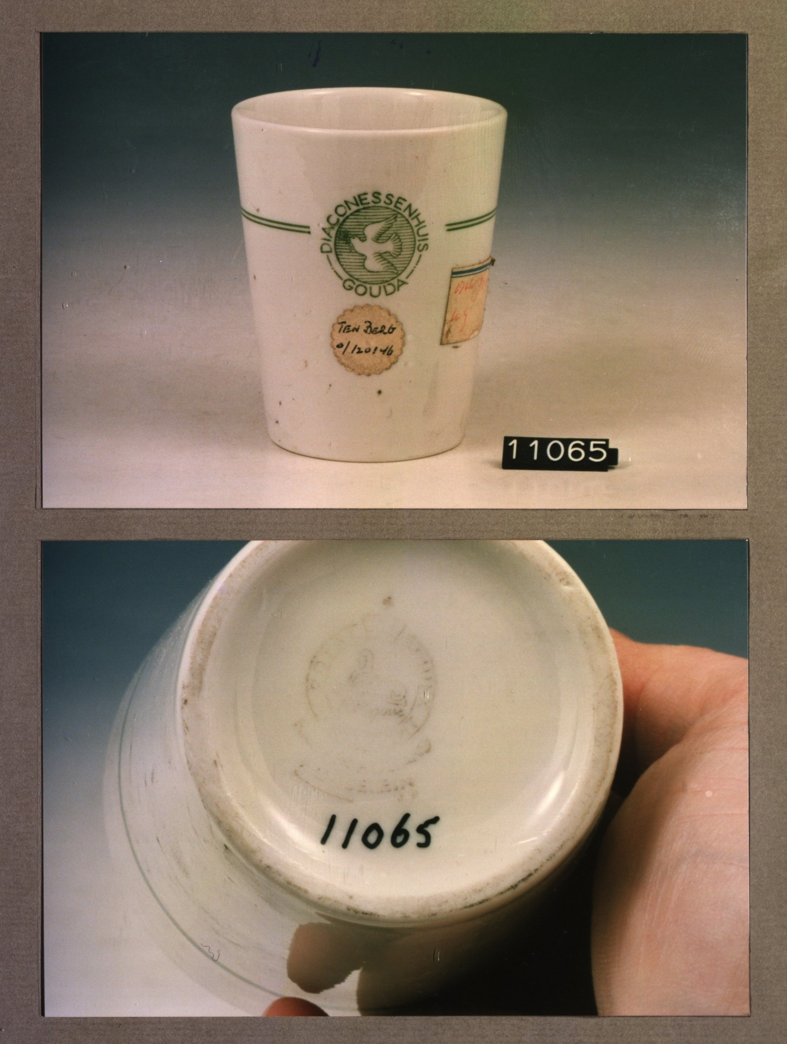 Beker met opschrift, model Z met decor Diakonessenhuis