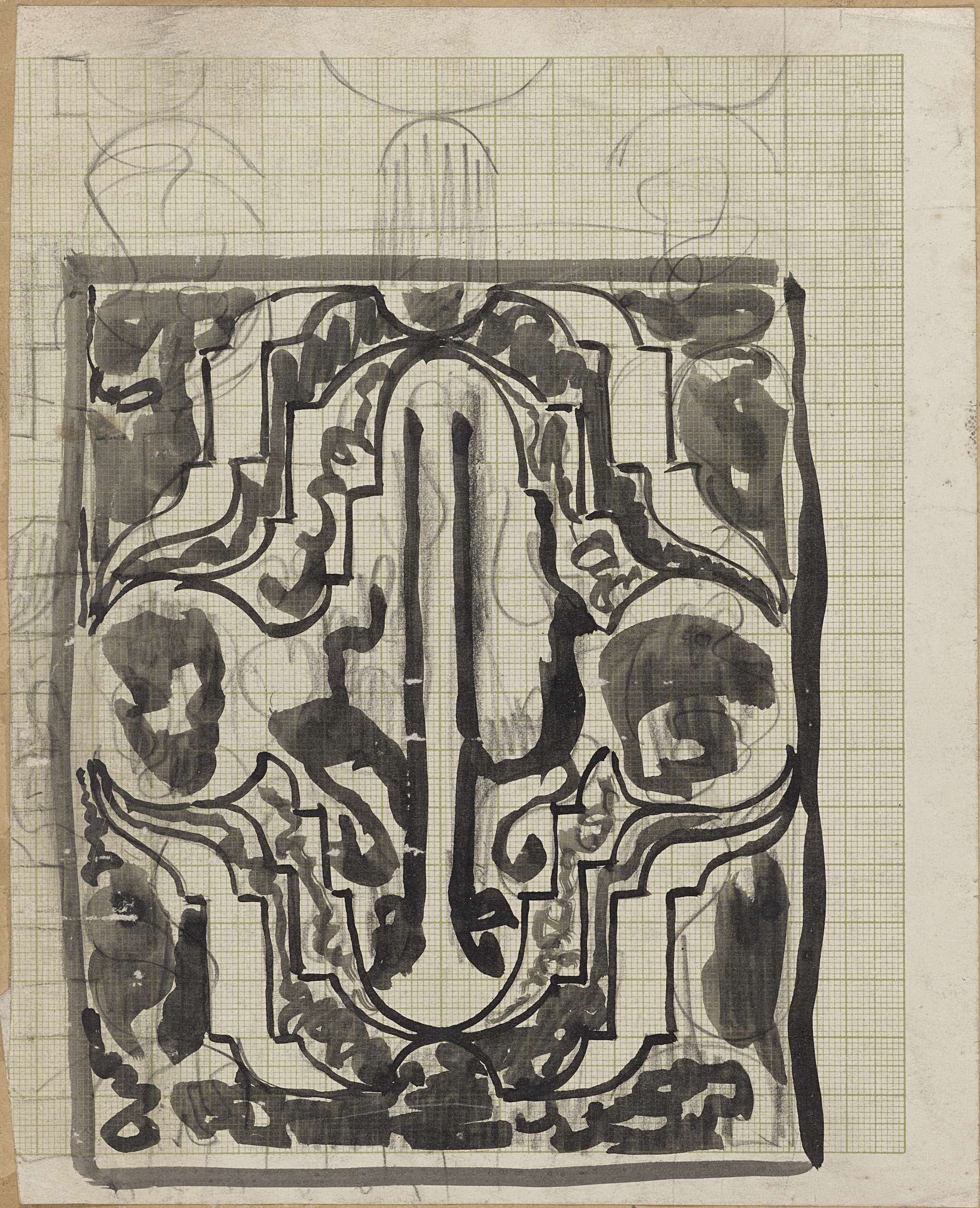 Ontwerp voor een glas-in-loodvenster met honingraatp...