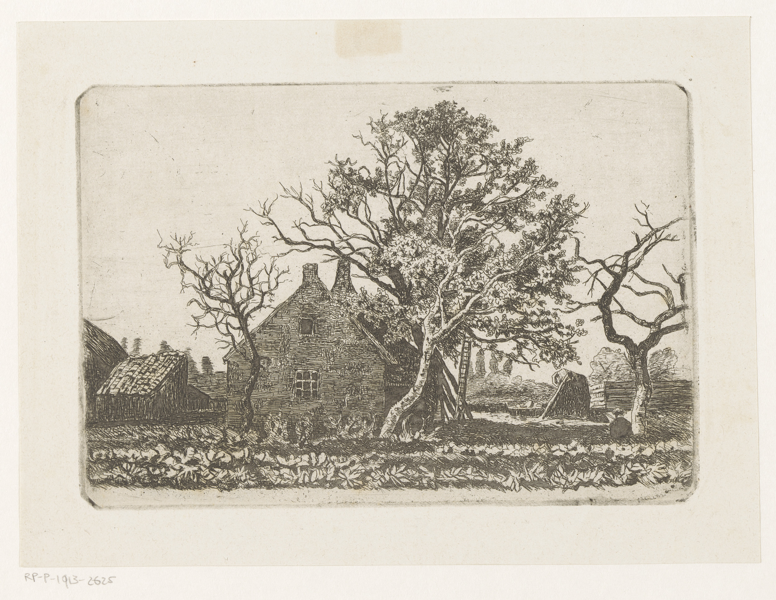 Gezicht op een boerderij en bomen