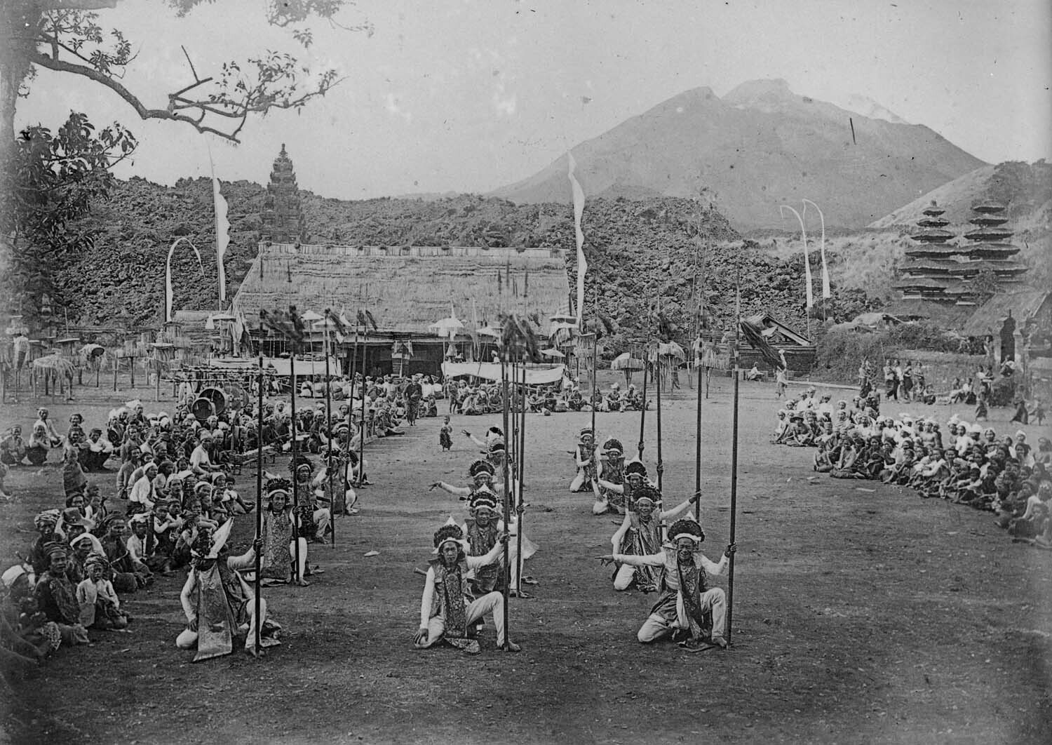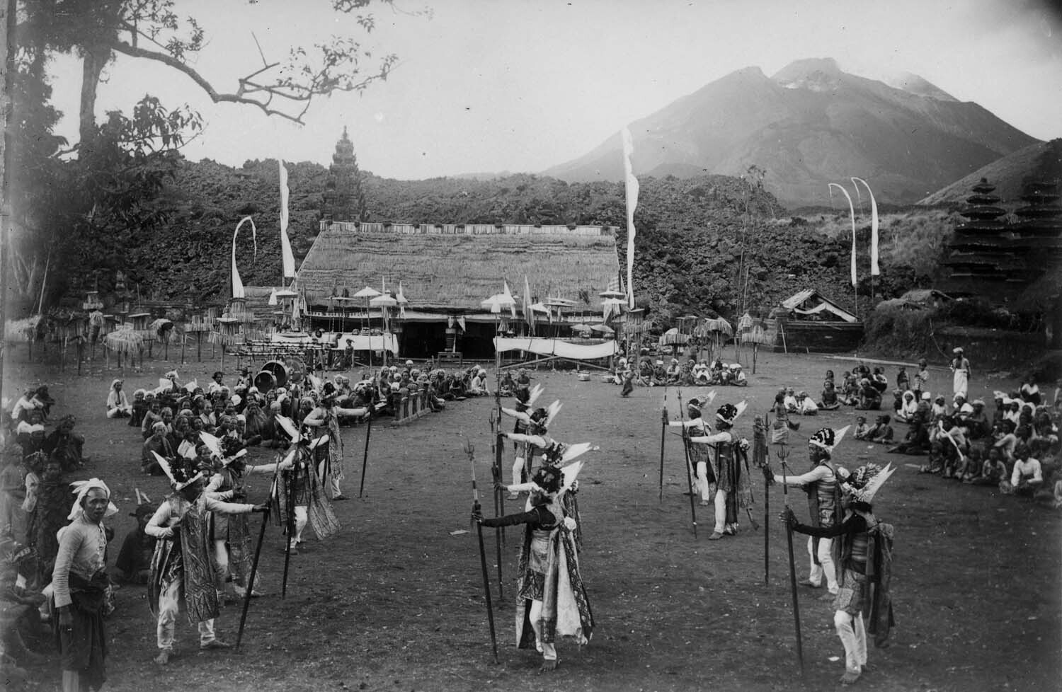 Speerdansers tijdens een Baris dansvoorstelling op h...