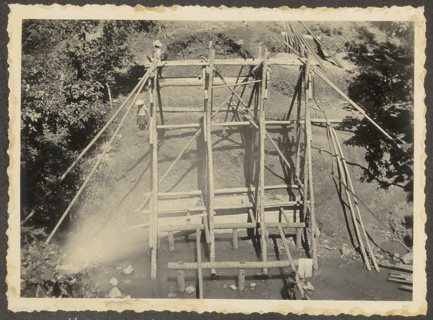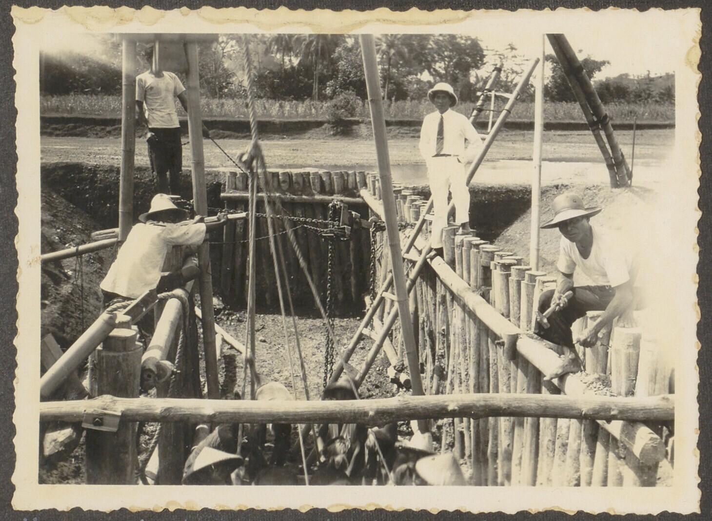 Aanleg van een spoorbaan door Javaanse arbeiders