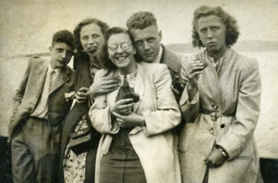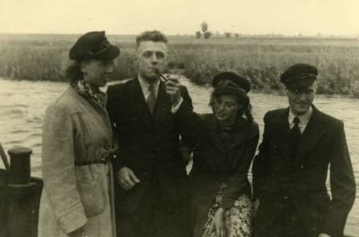 Adriaan Volker (tweede van links) met enkele anderen...
