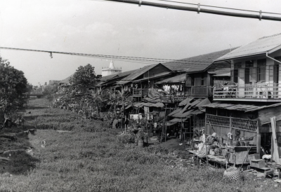 Huizen aan de oevers van een rivier of kanaal, waars...