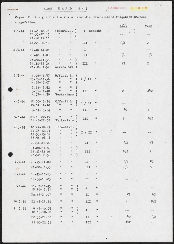 Alarmzeiten Essen