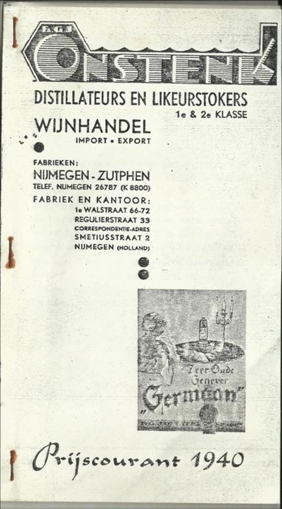 Prijslijst van Fa G.J. Onstenk Distillateurs en Like...