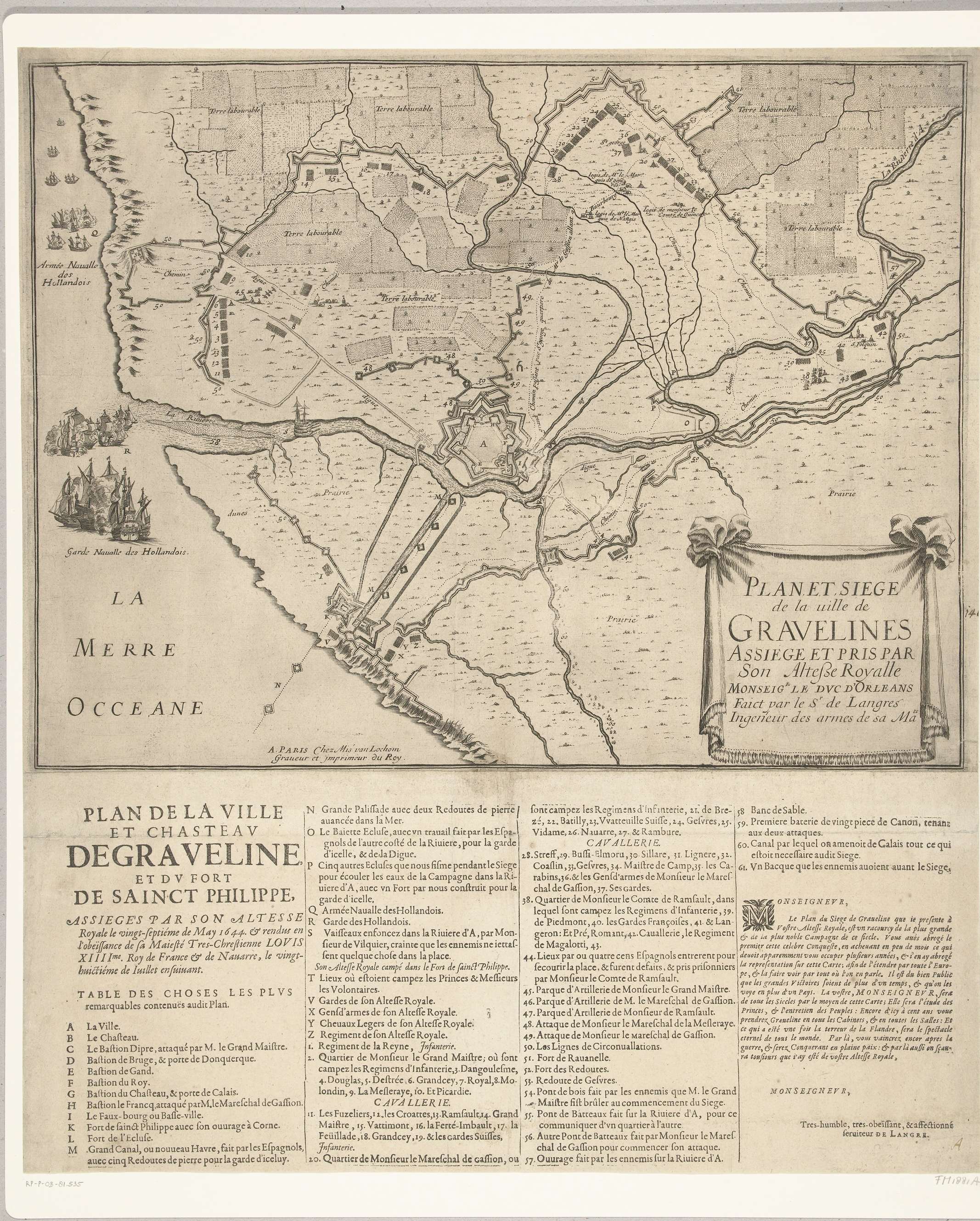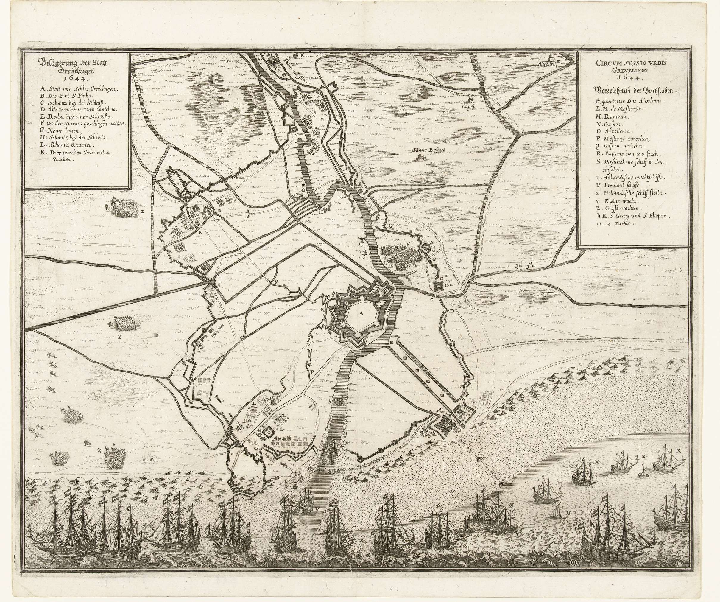 Kaart van beleg en verovering van Grevelingen, 1644