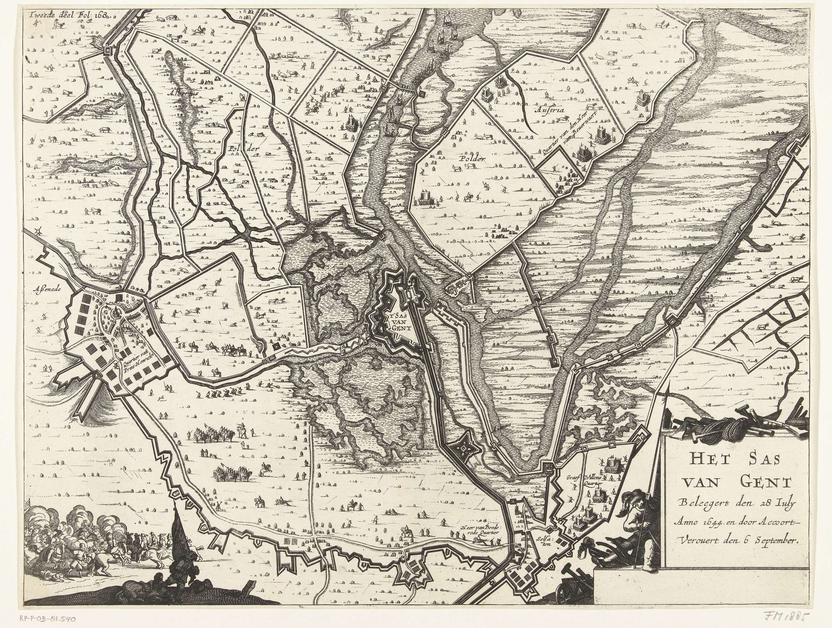 Kaart van het beleg van Sas-van-Gent, 1644