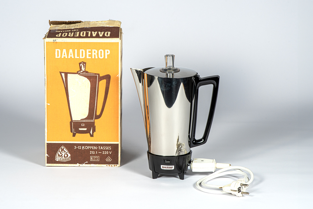 Koffiezetter van verchroomd metaal en kunststof, ver...