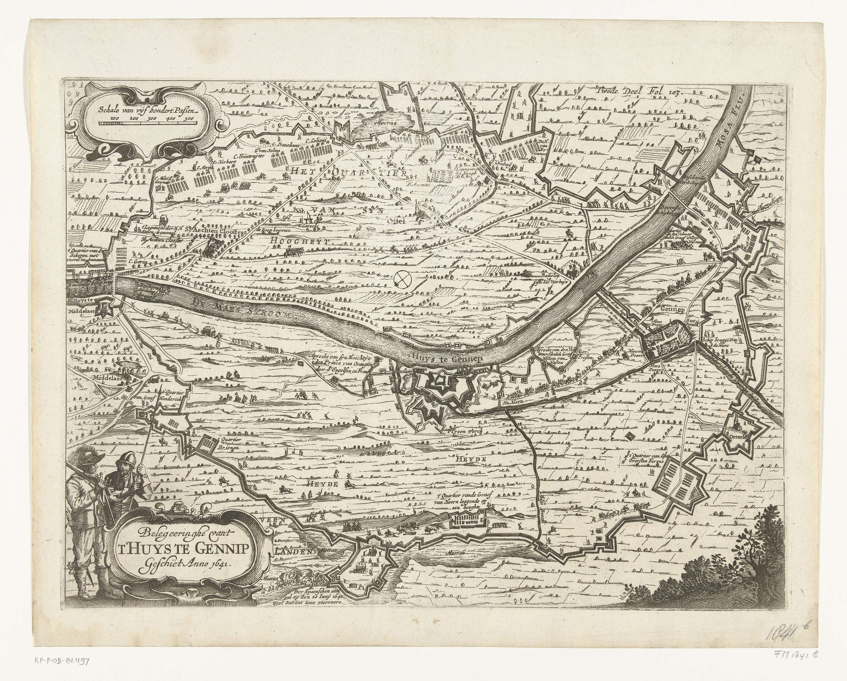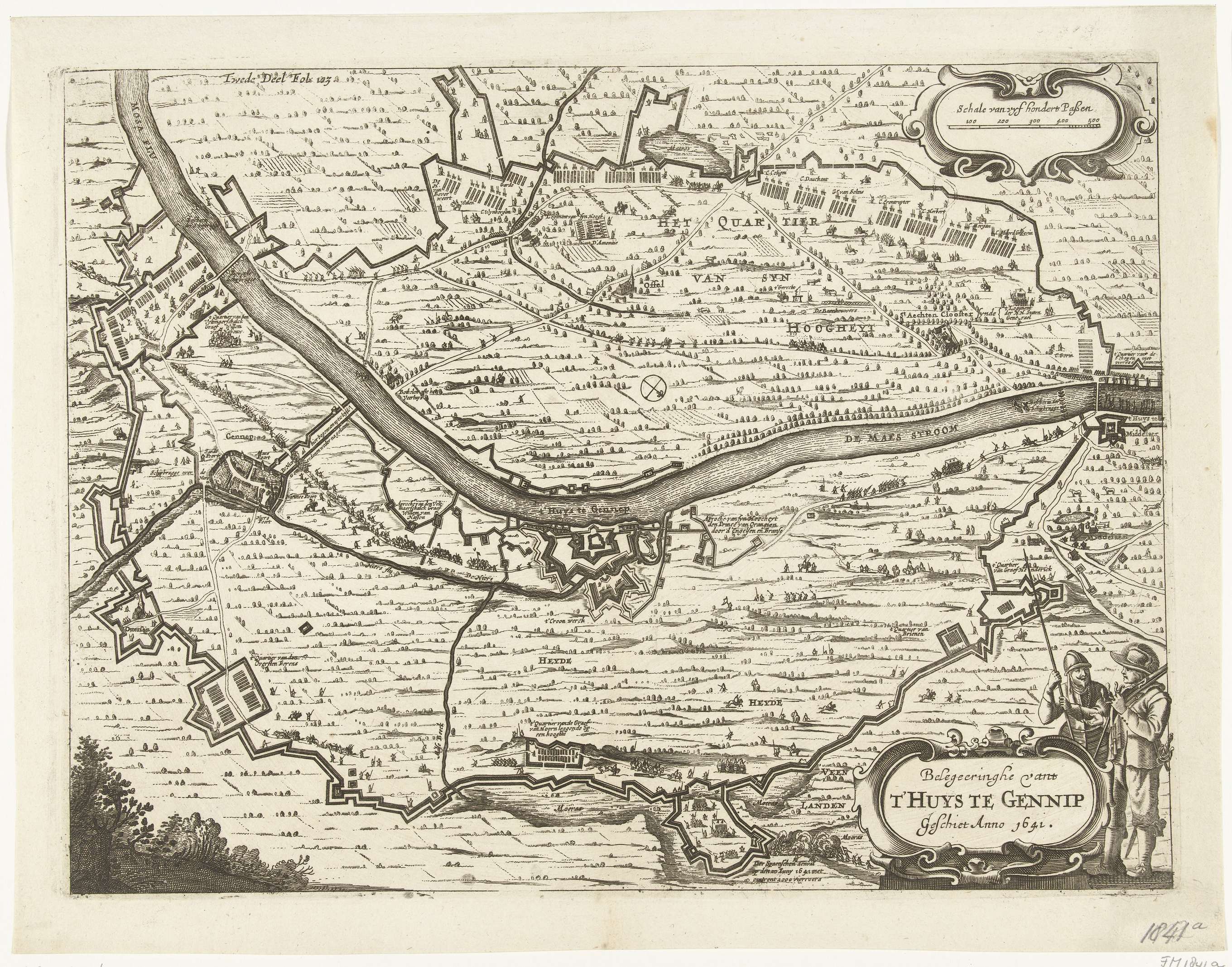 Kaart van het beleg van Huis te Gennep (zijblad), 1641