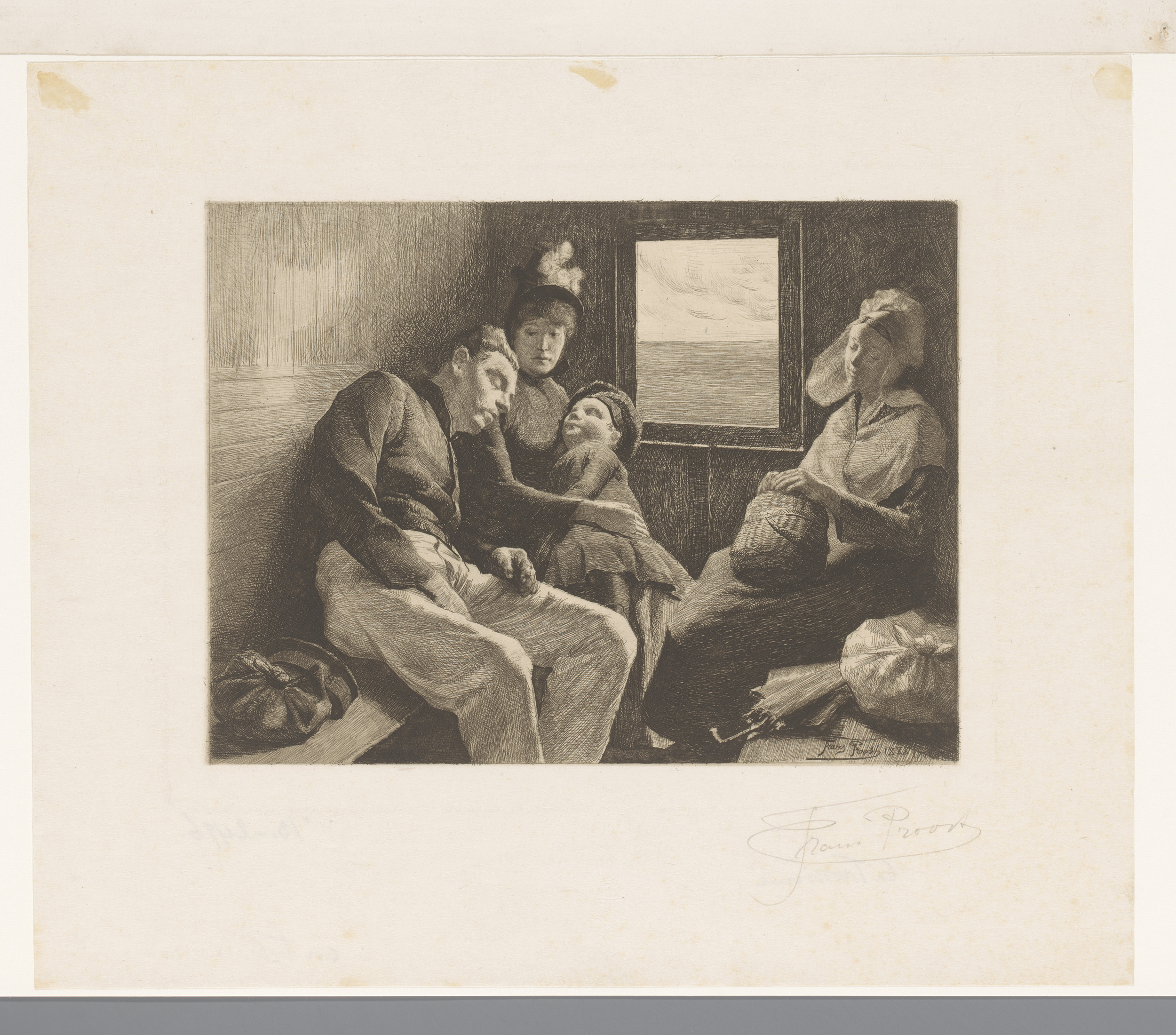 Vier personen in een derdeklascoupé
