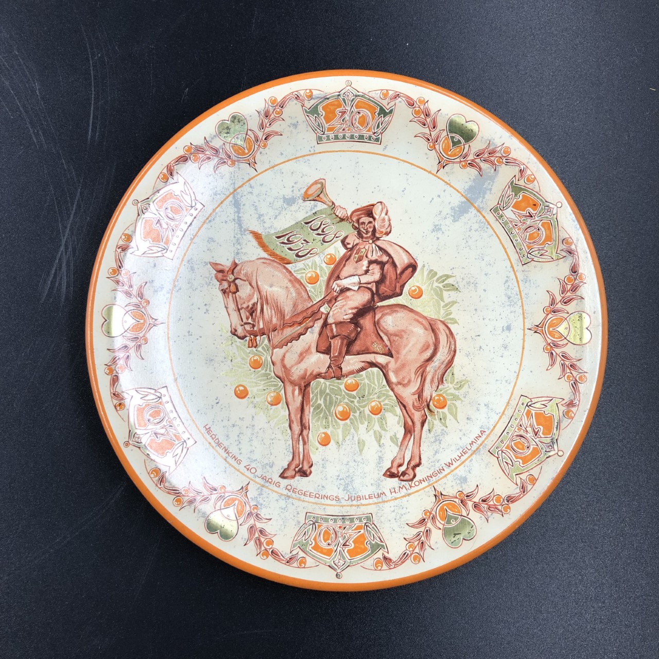Blikken wandbord 'Herdenking 40 jarig regeringsjubil...
