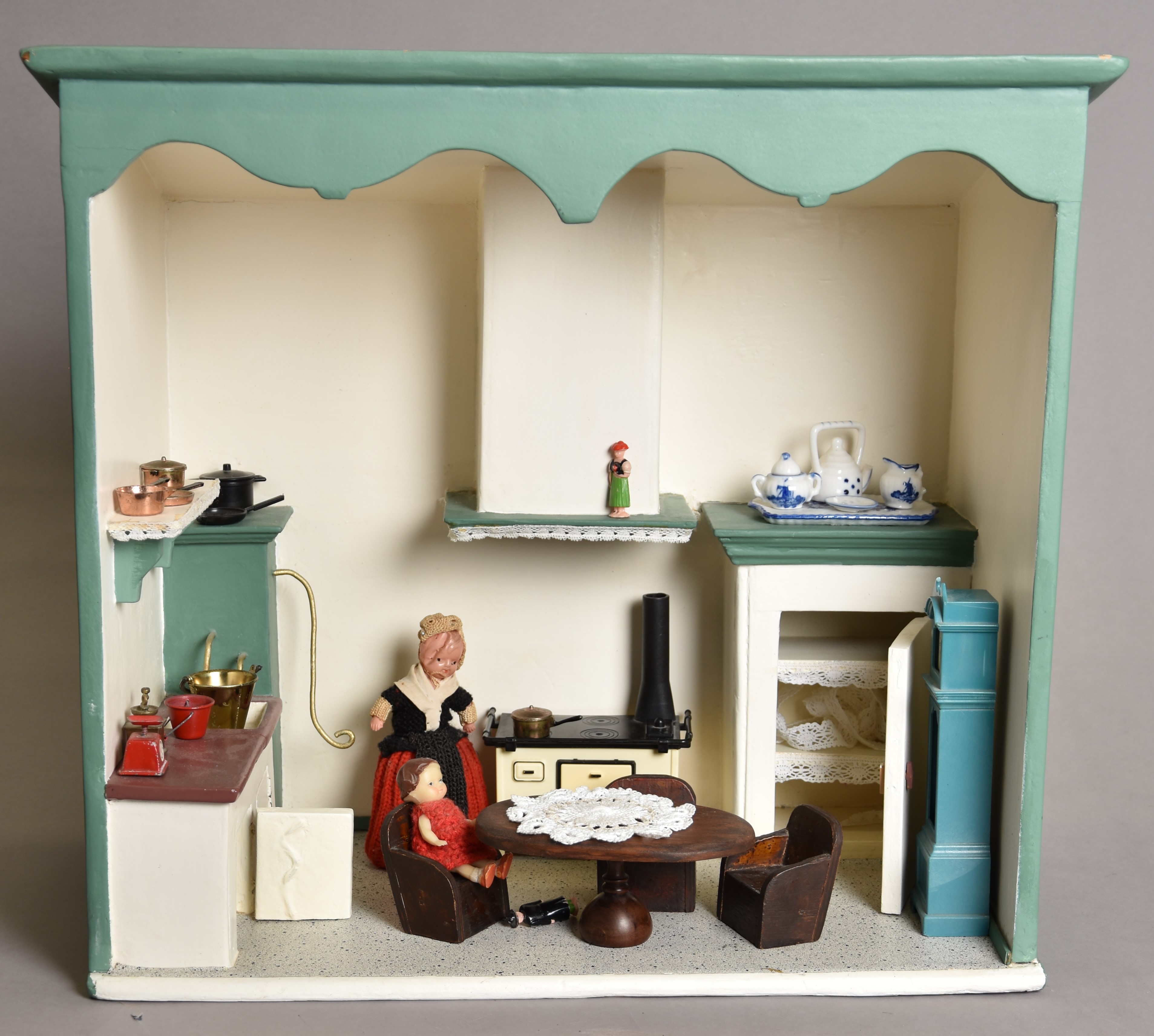 Poppenhuis in de vorm van een keuken.