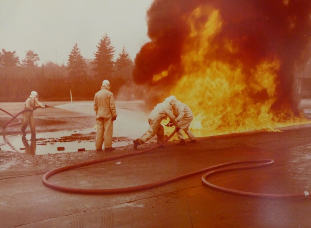 Brandweer opleiding. Blusoefening.