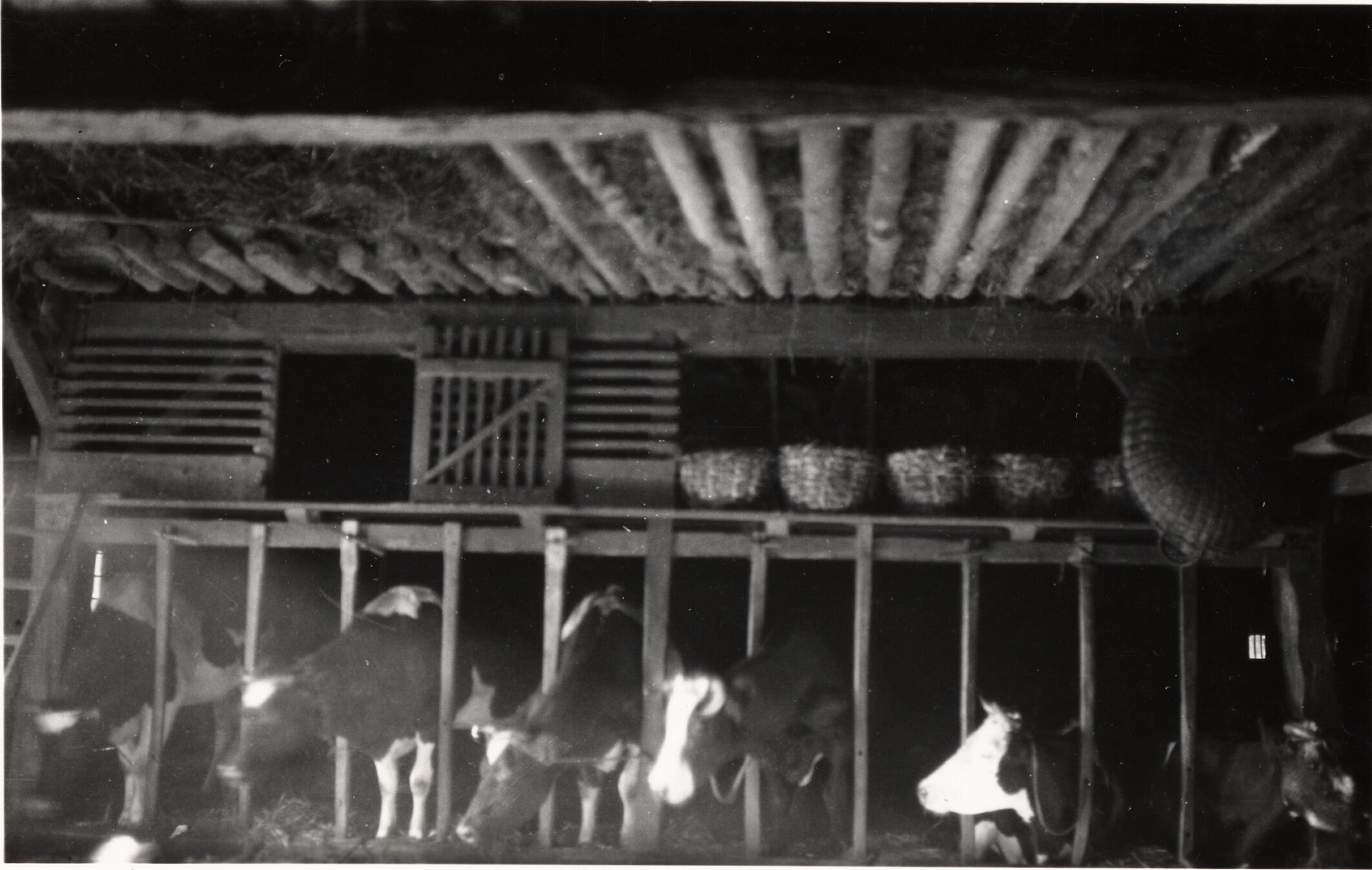 Koeien op stal, Staphorst, 1929 (zwart-wit foto)