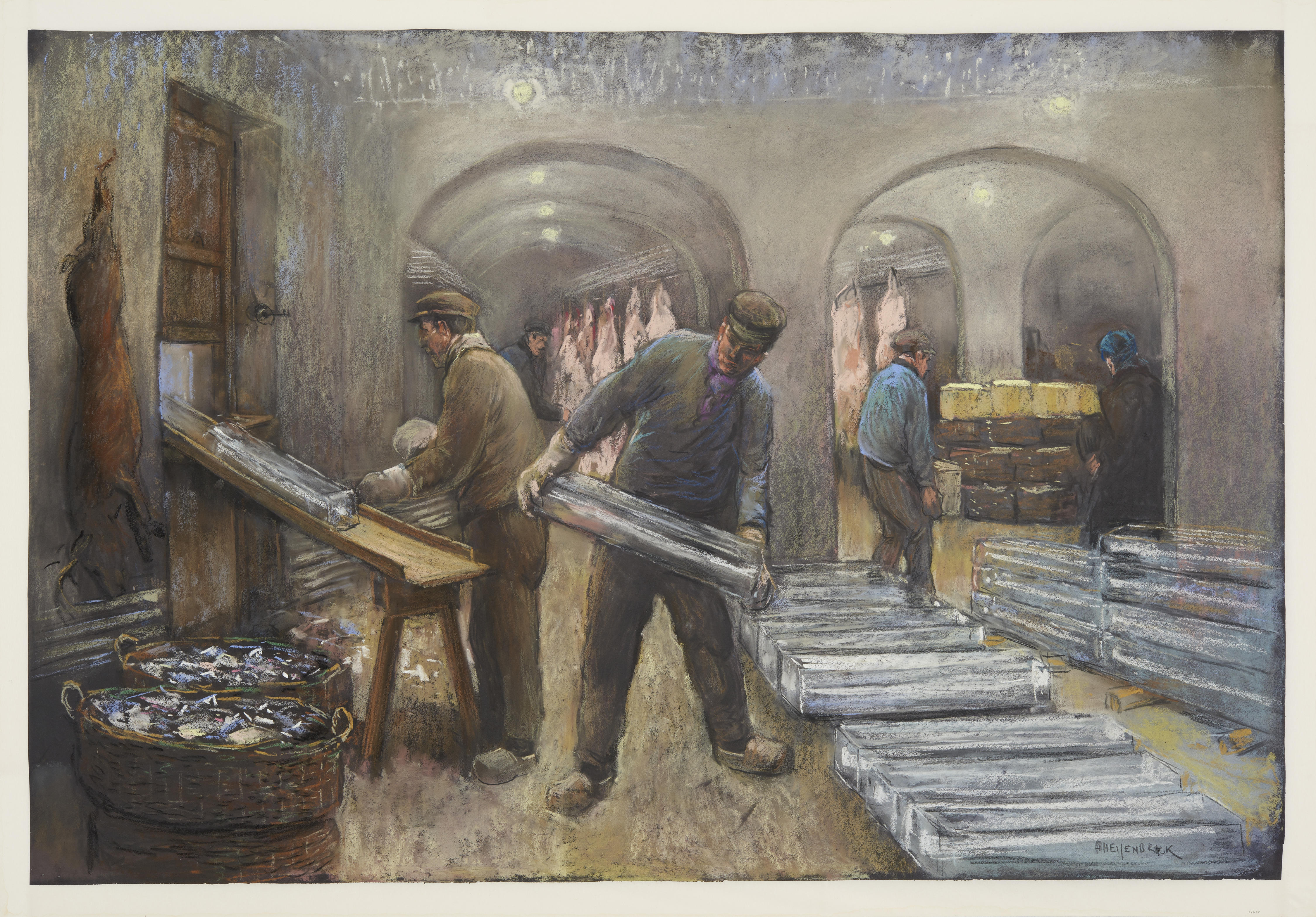 Interieur vensterglasfabriek in Maassluis, circa 1930