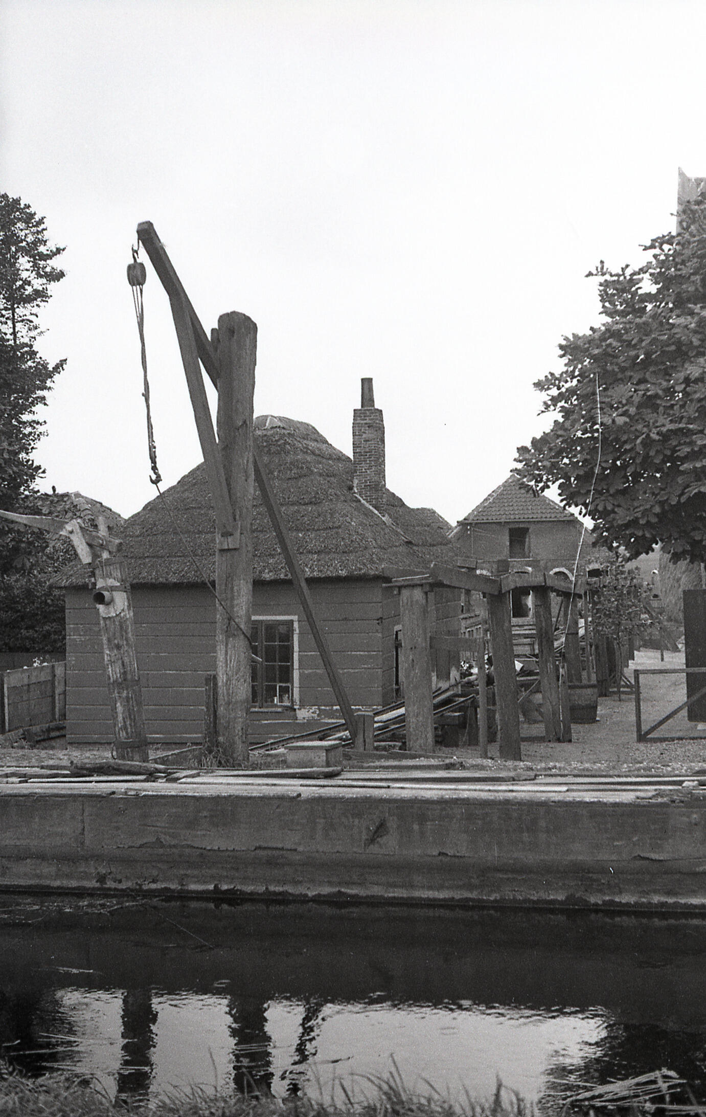Kade met hijskraan, Hoorn , 1936 (zwart-wit negatief)