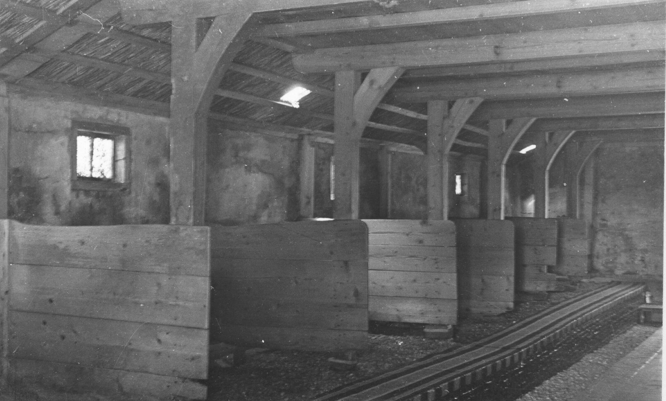 Interieur van een stal, Hoorn, 1936 (zwart-wit foto)