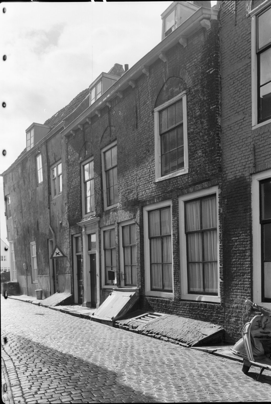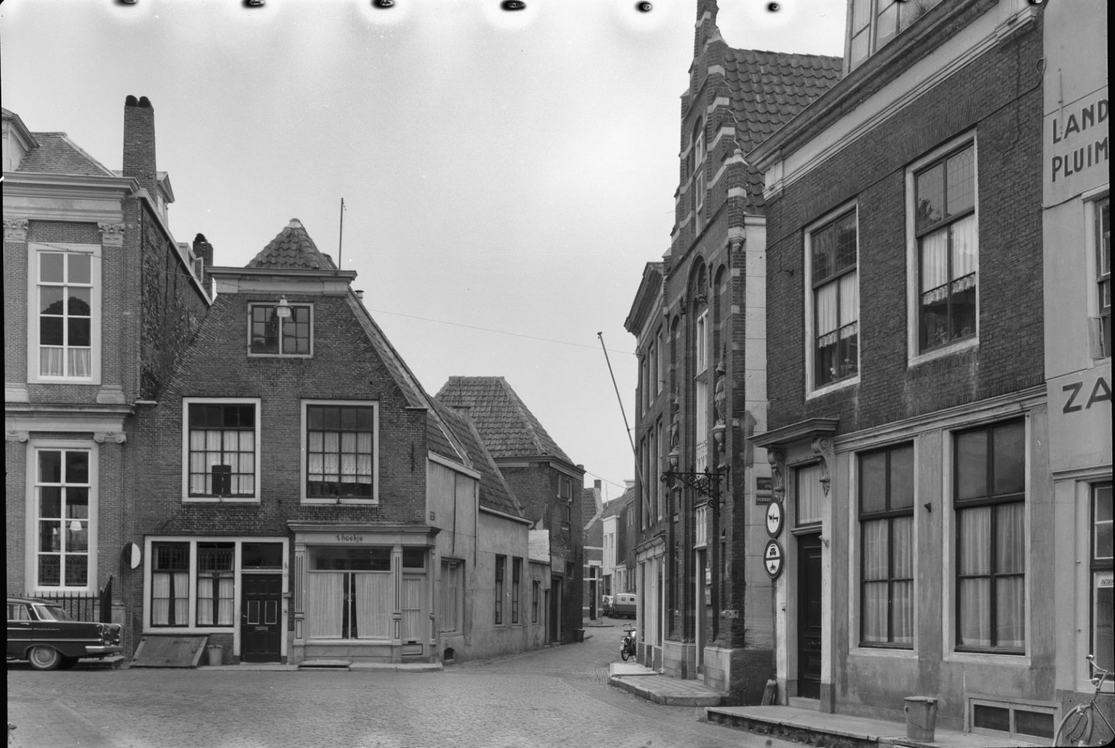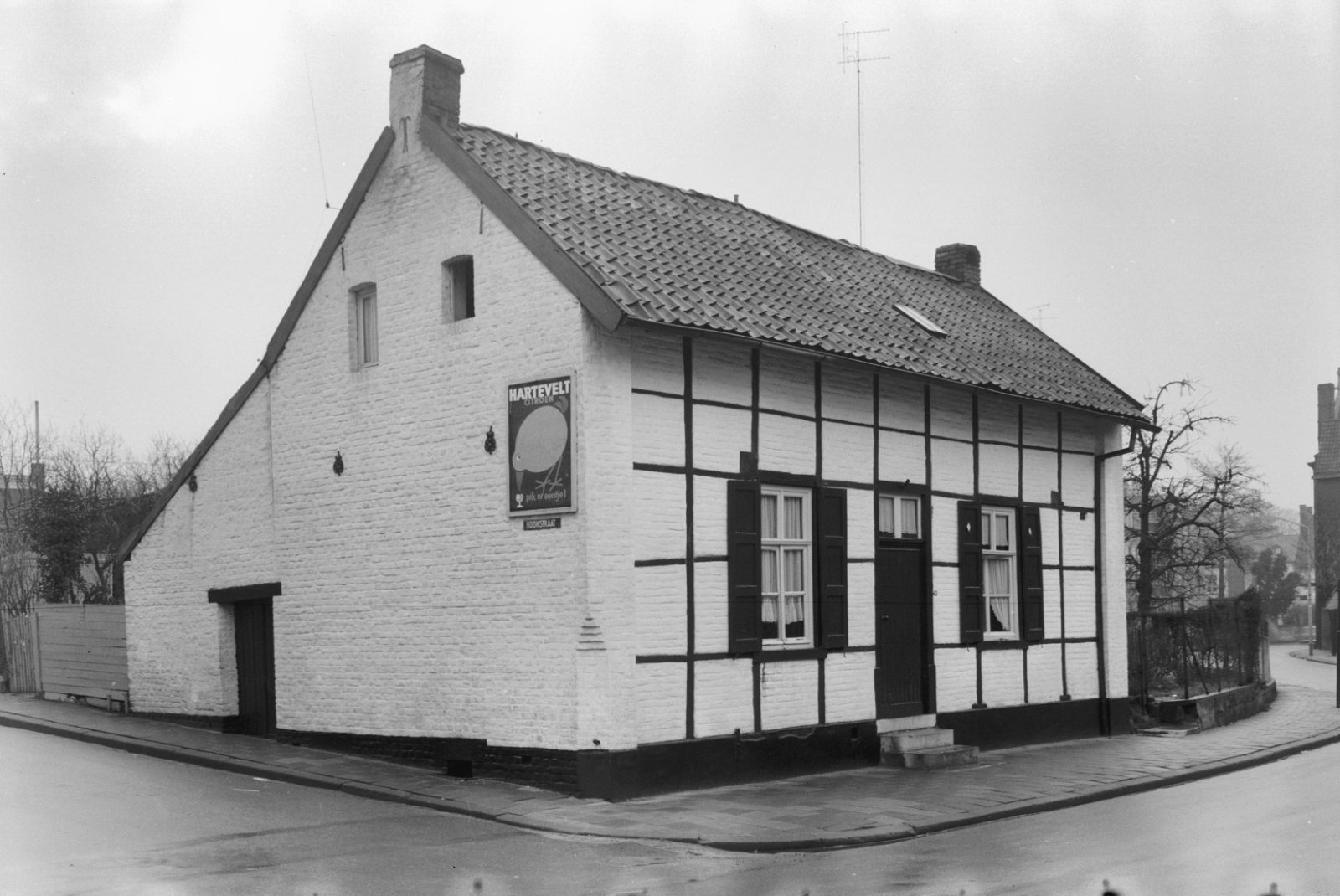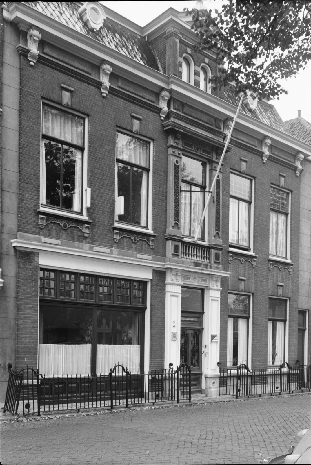 Voorgevel en zijgevel van witgepleisterd pand met ve...