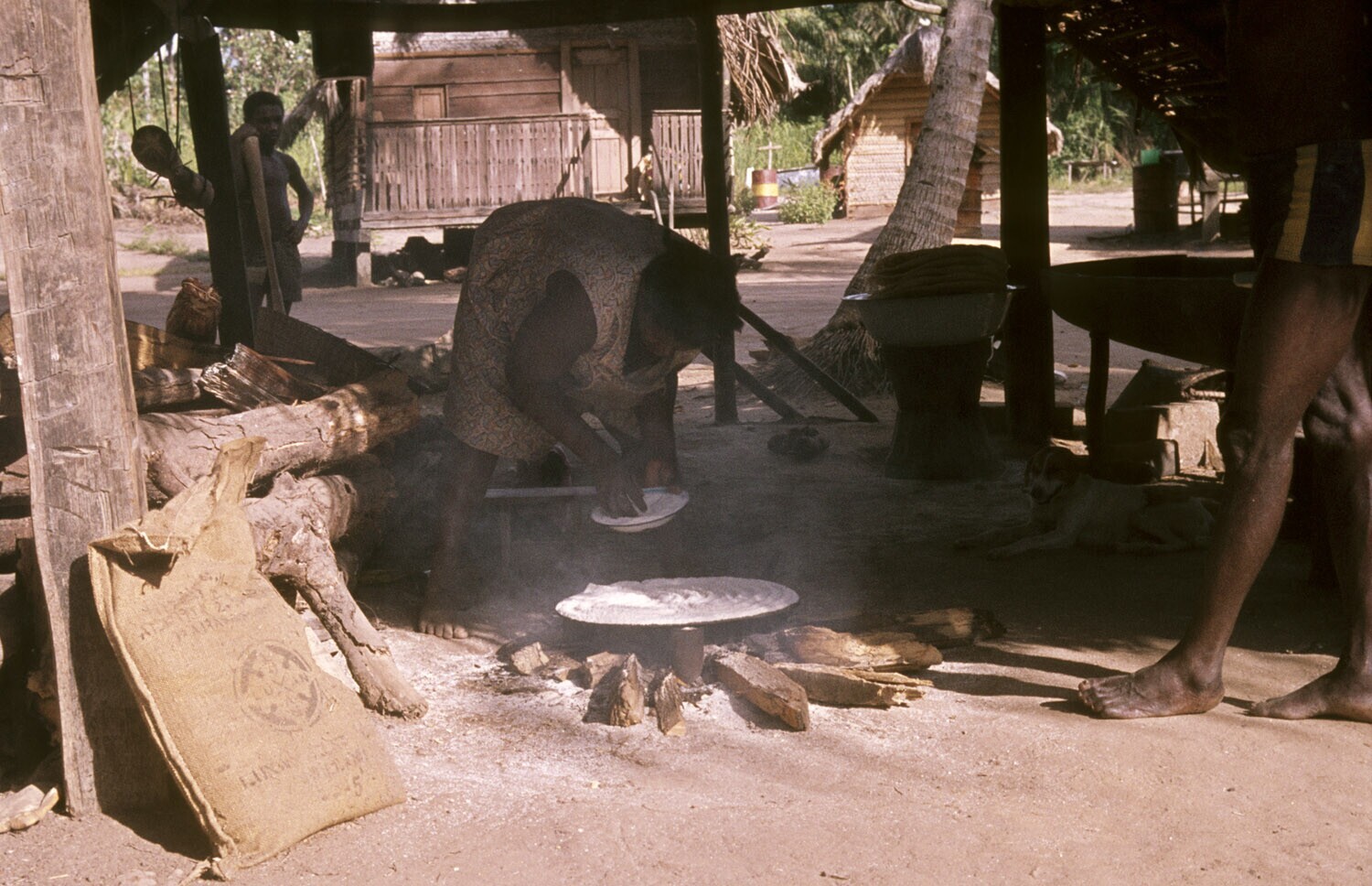 Het bakken van maniokkoeken door inheemsen in het do...