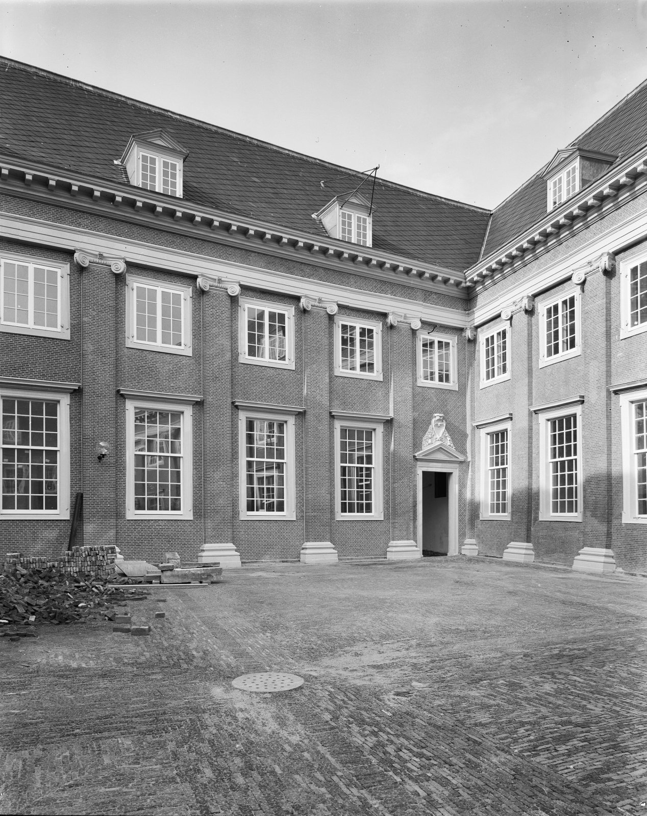 Interieur, schilderij, overzicht binnenplaats, repro...