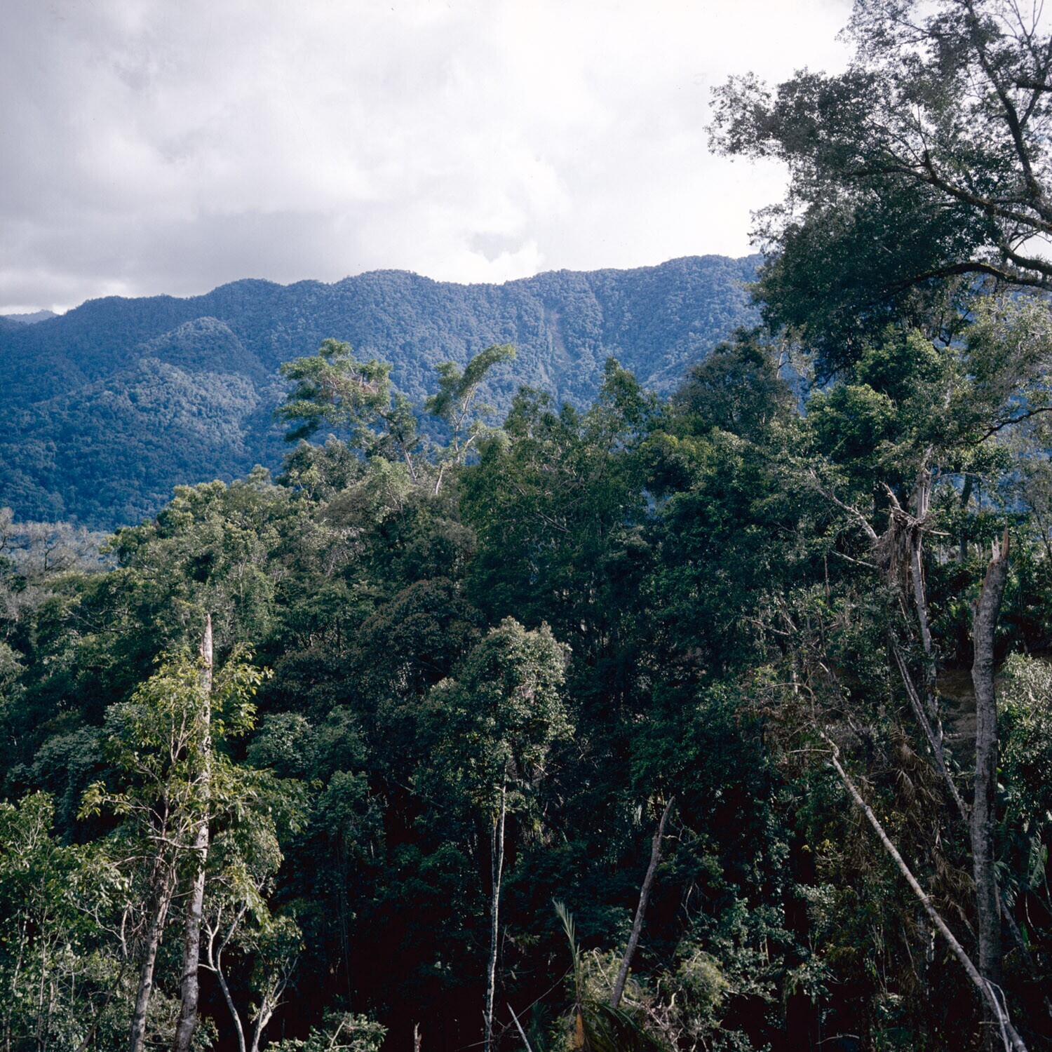 Uitzicht over het regenwoud in de Sopu vallei ten zu...