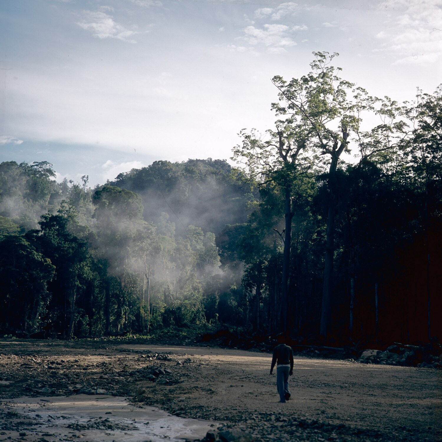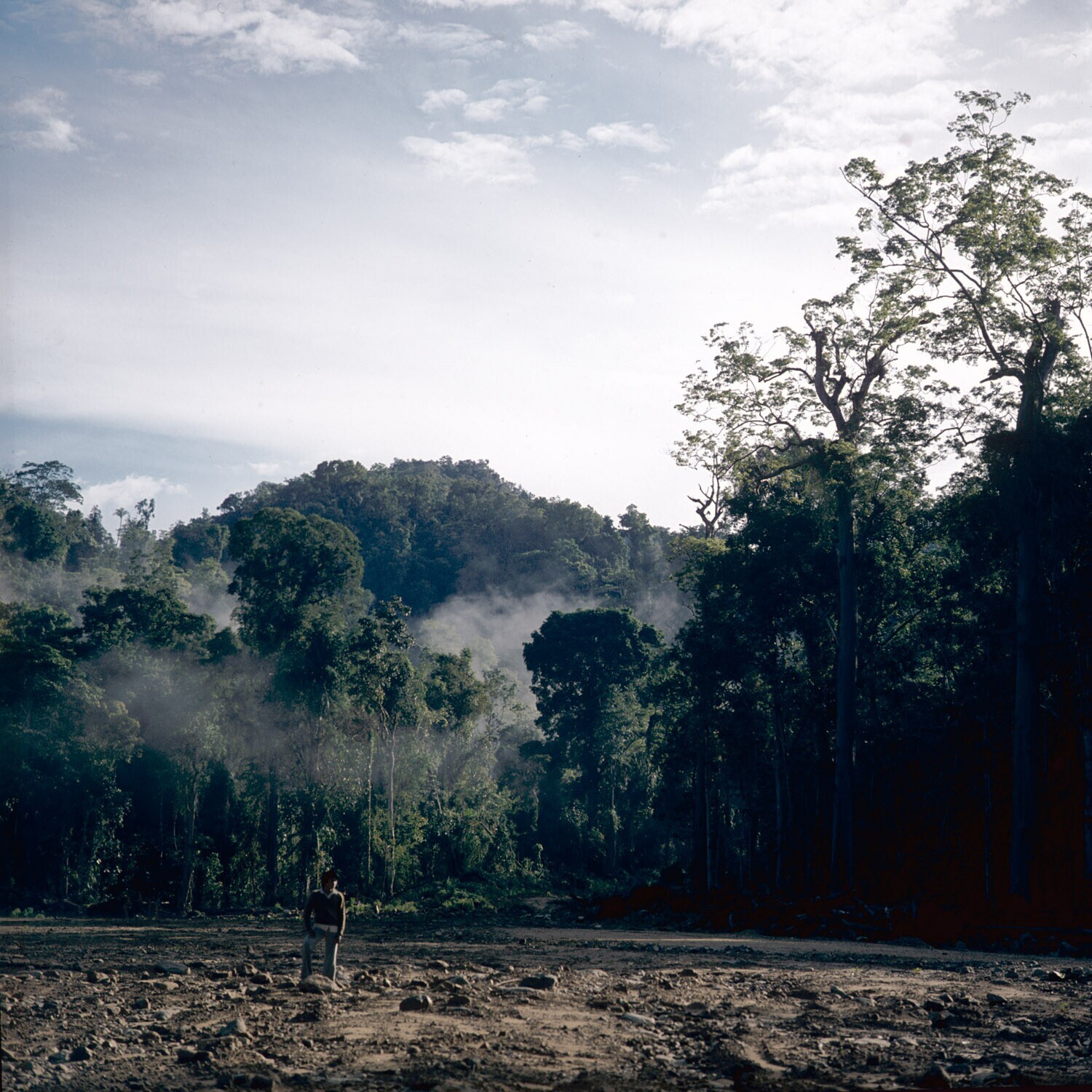 Pad langs ontgonnen stuk van het regenwoud in de Sop...
