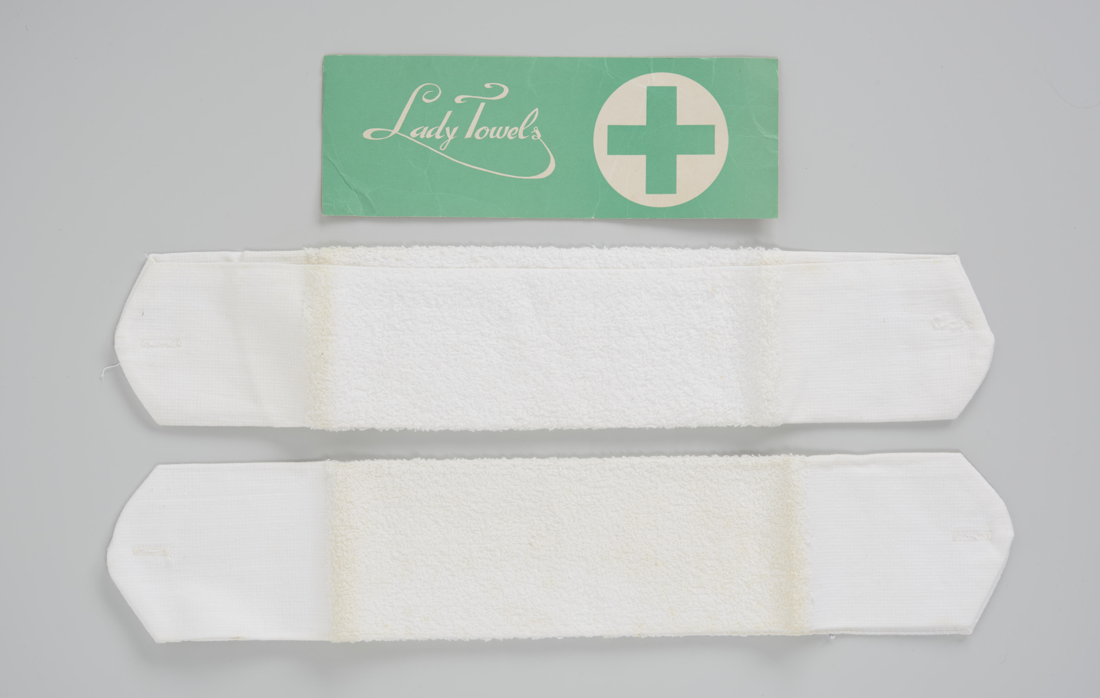 Wasbaar maandverband van gebreide katoen, 1925–1970