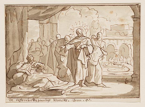 Bij het badwater van Bethseda geneest Jezus een lang...