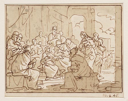 Jezus spreekt tot de Farizeën, terwijl zijn discipel...