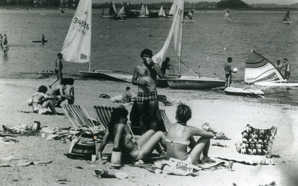 Zwart-wit foto van het strand van de Byland te Tolka...