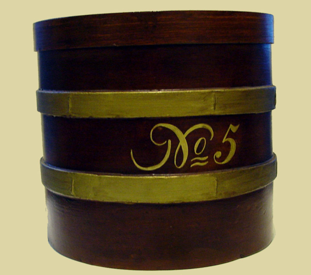 Tabaksvat van hout met opdruk 'No 5' ca. 1900-2005