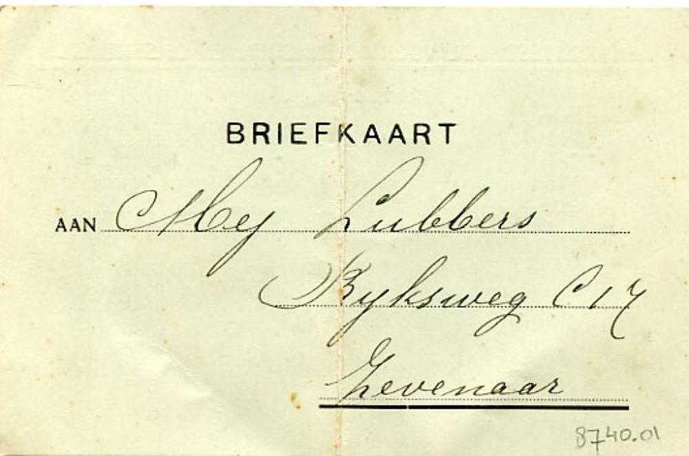 Briefkaart papier 'Toelating tot de Ambachtsschool v...