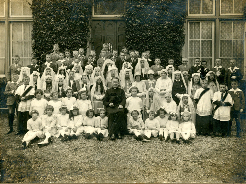 Groepsportret van Plechtige Communicanten te Beek ve...