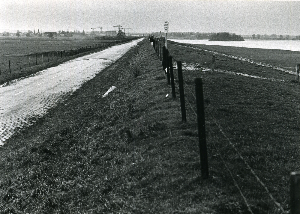 Zwart-wit foto van de 's-Gravenwaardsedijk te Lobith...