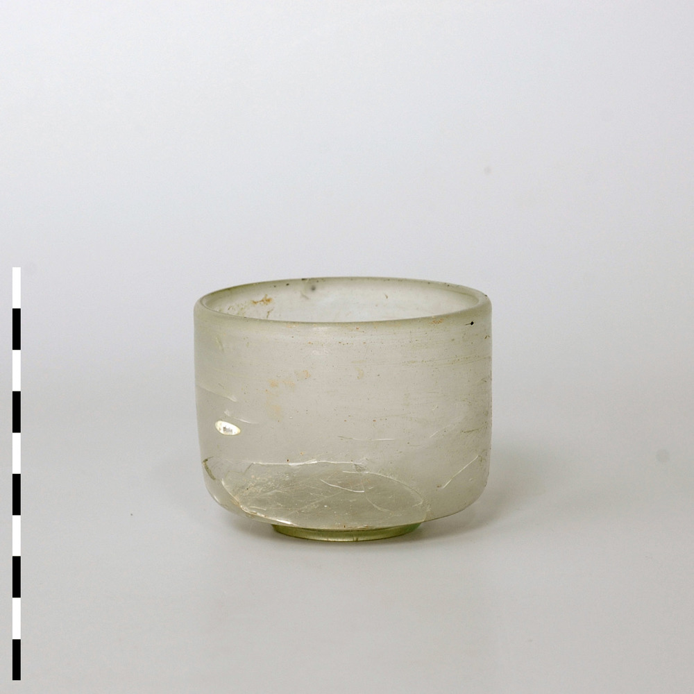 Beker van dik kleurloos glas uit de Romeinse tijd