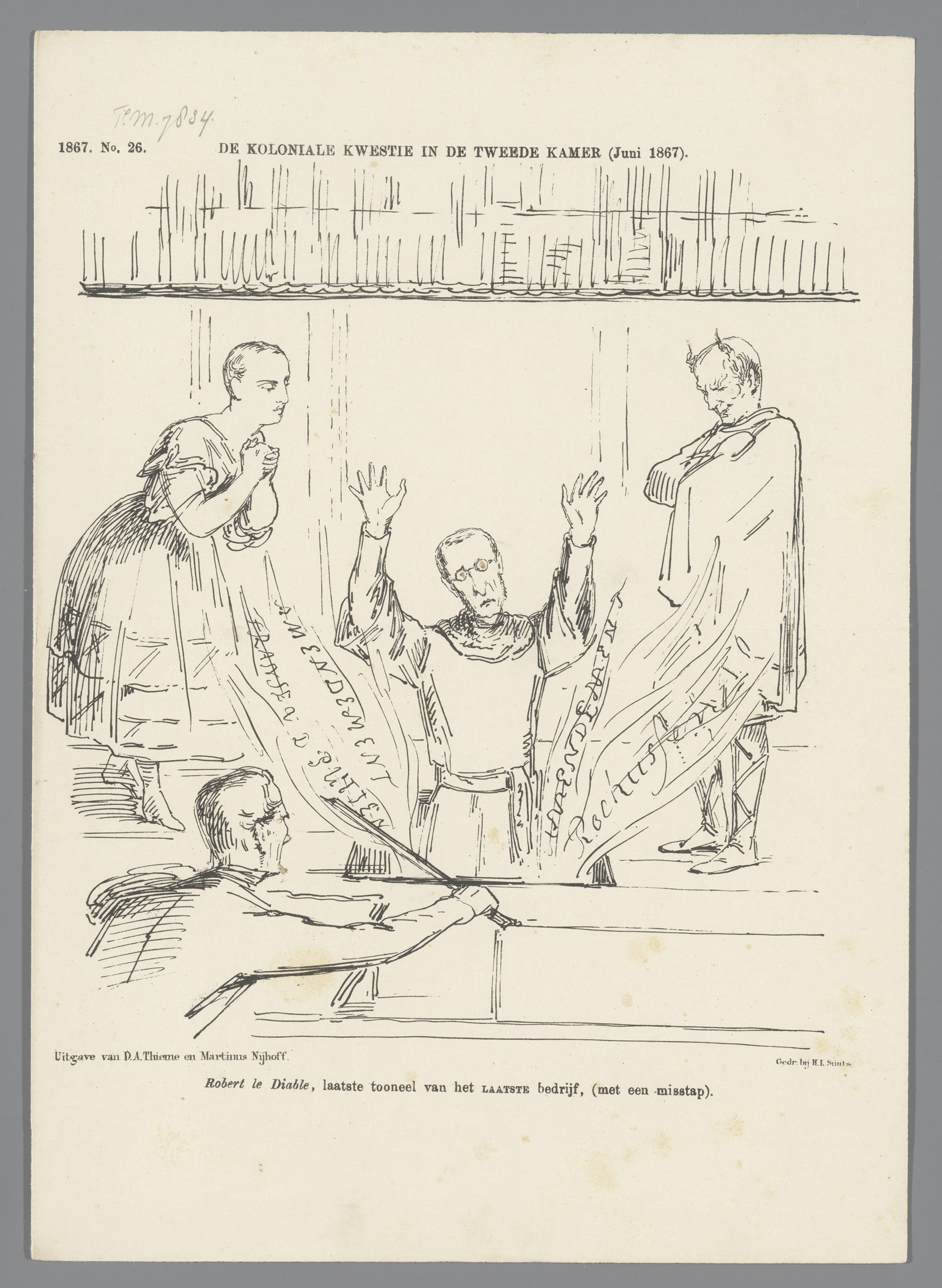 Spotprent op de opvoering van Klaasje Zevenster, 1867