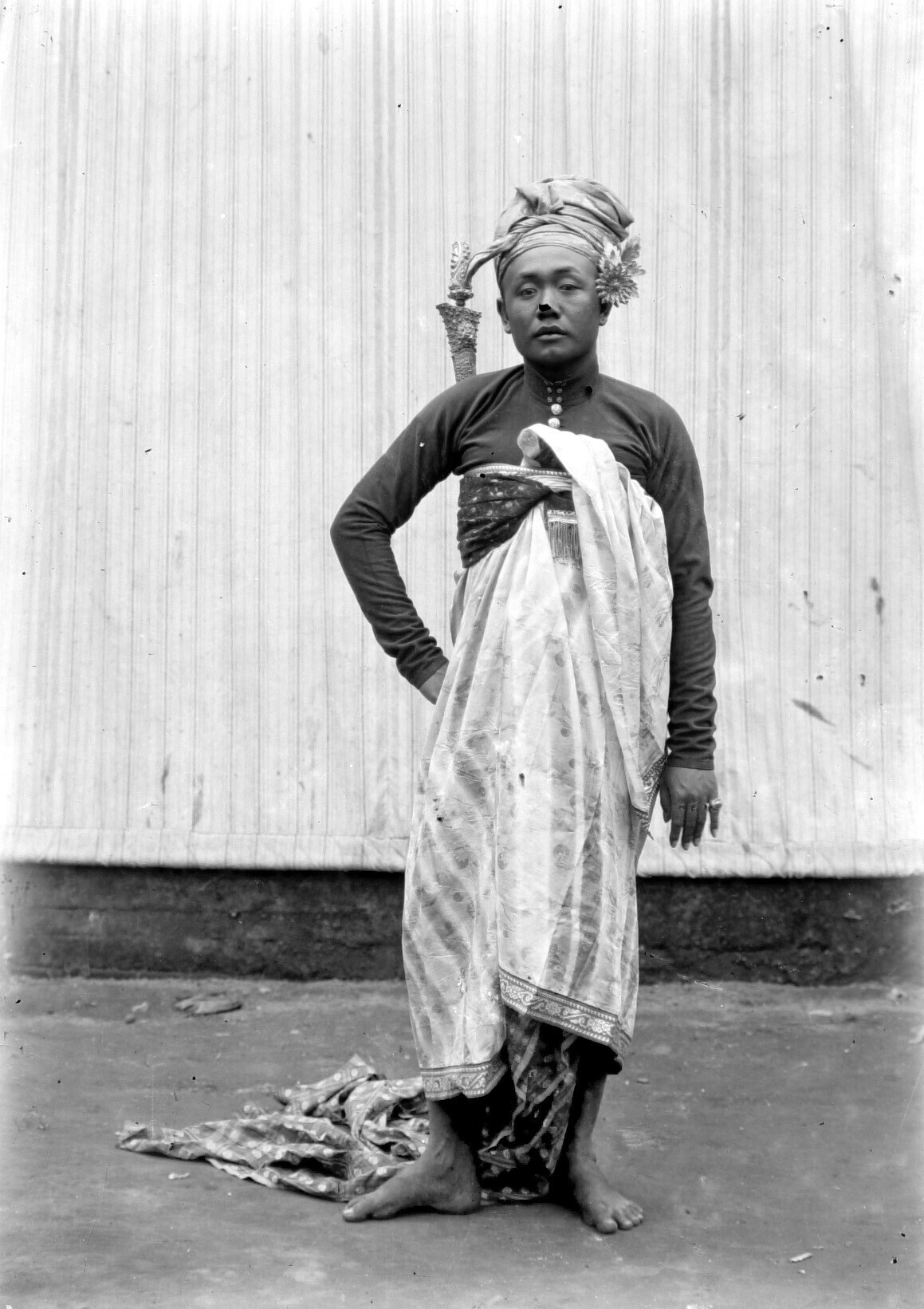 Portret van een jonge Balinese man met kris