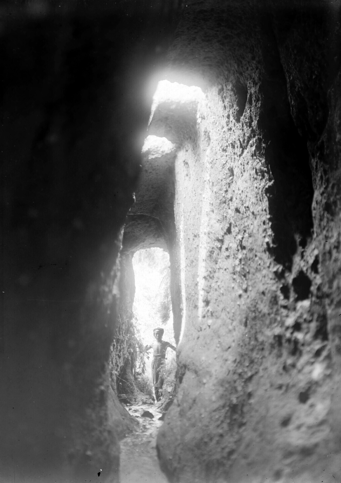 Jongen poseert bij een toegang tot een grot op Bali