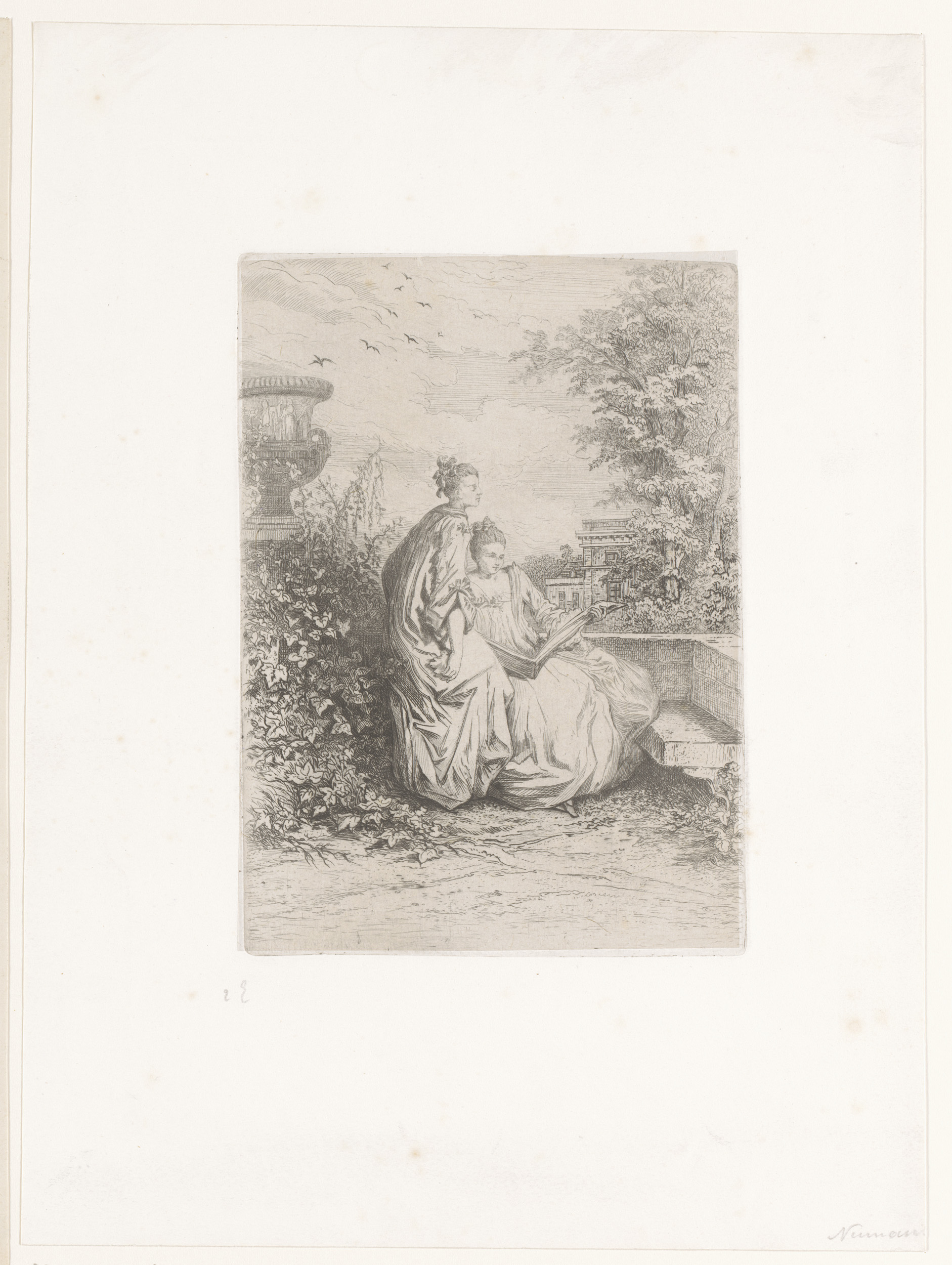 Twee jonge vrouwen lezend op een buitenterras