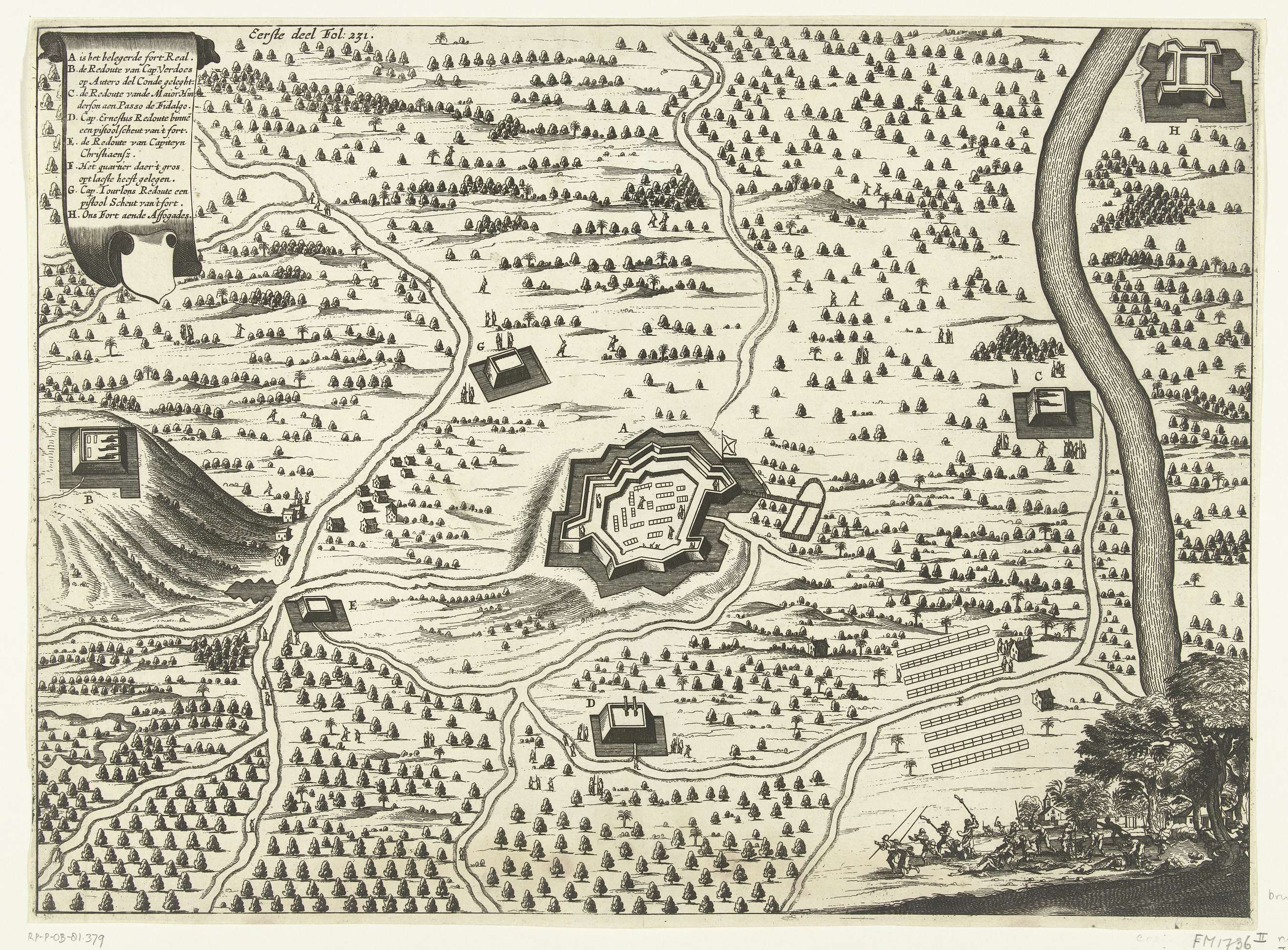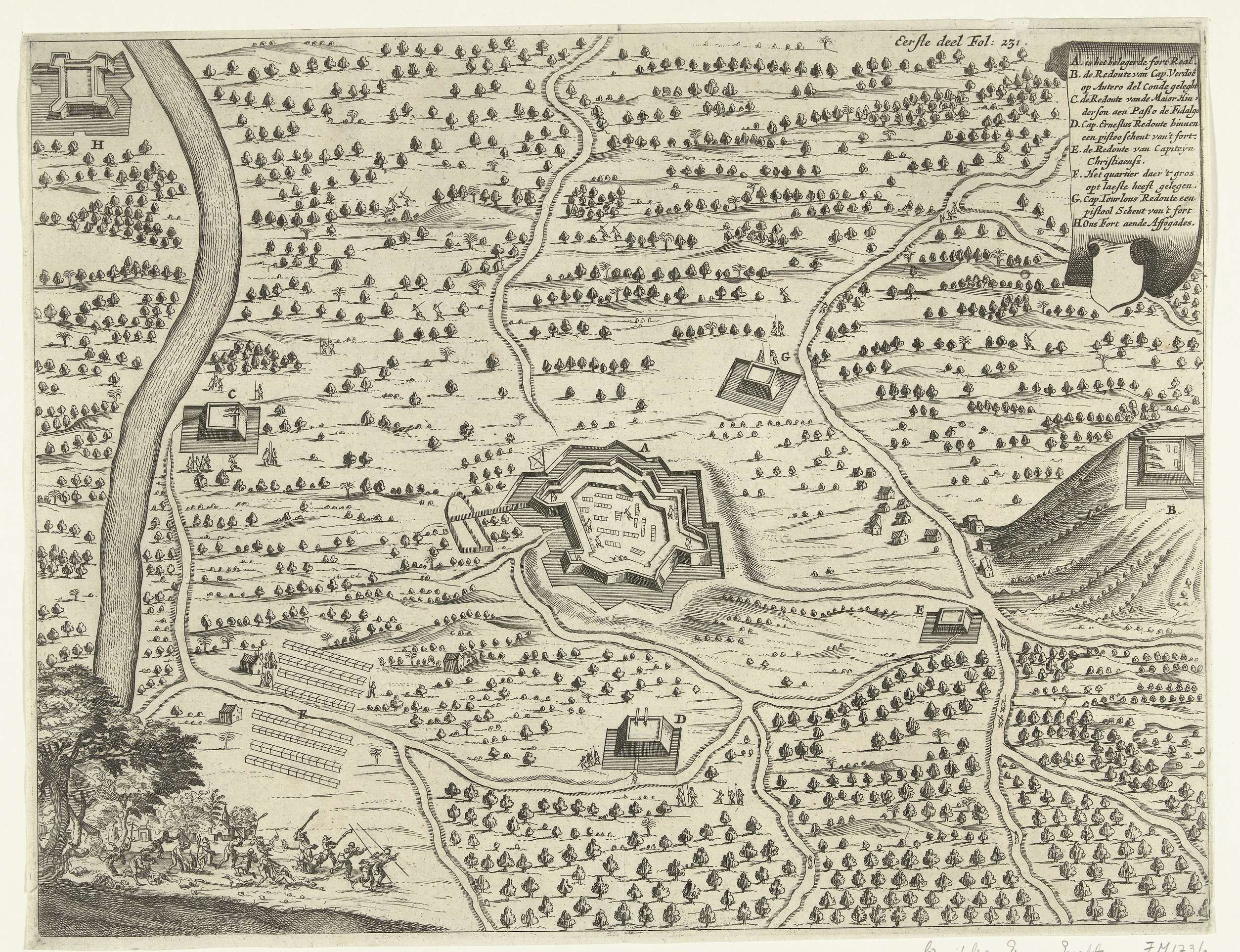 Beleg en verovering van het Fort Real in Brazilië do...