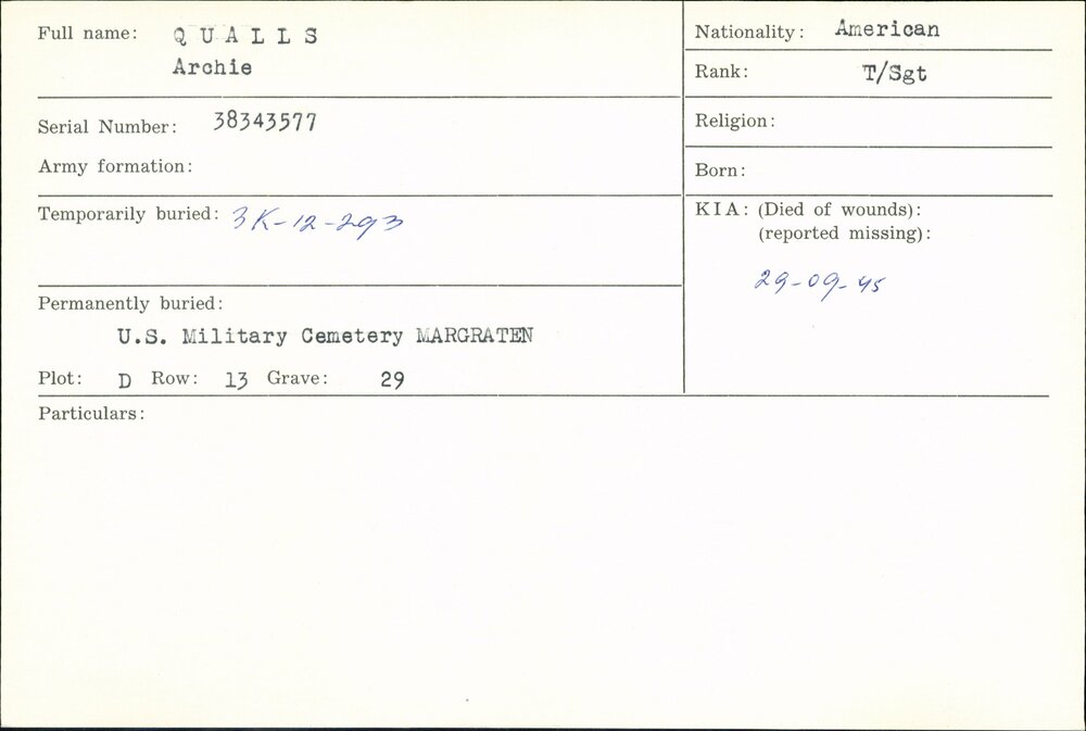 Oorlogsgraven comité kaarten Achternamen Q